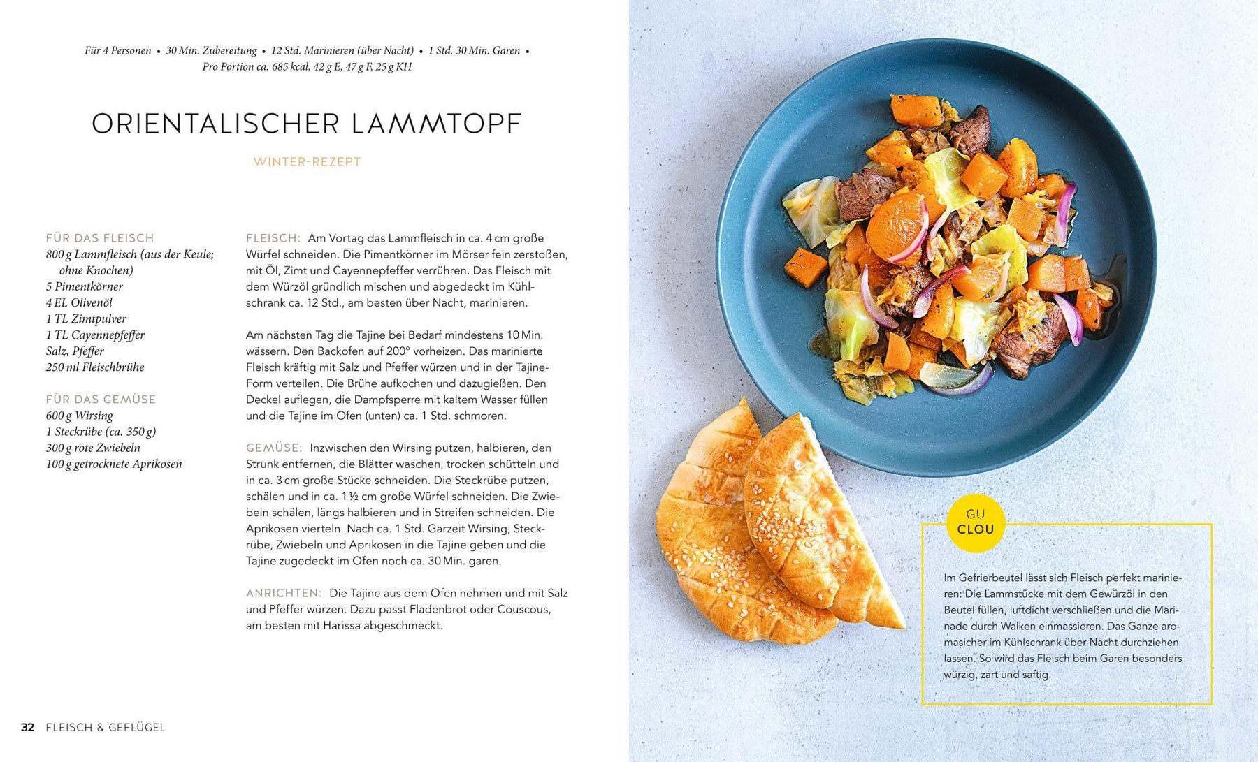 Deckel öffne dich! - und eine Wunderwelt aus Farben und Düften verführt Augen und Gaumen. Die Tajine, der traditionelle Tontopf aus dem Orient, ist wie eine Schatztruhe: Sie bringt den Eigengeschmack von Gemüse, Früchten, Fisch und Fleisch zum Strahlen und lässt die Aromen regelrecht funkeln. Der neue GU KüchenRatgeber Tajine weist jetzt auch Anfänger in die Geheimnisse des hippen Orient-Eintopfs ein. Step-Anleitungen und praktische Tipps für den Umgang mit der Tajine gibt es zum Ausklappen immer im Blick. Die Rezepte bilden die ganze Vielfalt ab, mit Fisch, Meeresfrüchten, Geflügel, Fleisch, Gemüse und Früchten, von herzhaft bis süß. Ob Orientalischer Wirsing-Lammtopf, Zitronen-Hähnchen oder gar Bratäpfel - alle Zutaten werden nur in die Tajine geschichtet, etwas Flüssigkeit dazu, Deckel drauf - und dann einfach abwarten, bis alles fertig ist. Super easy und gesund, denn durch das sanfte Garen bleiben Vitamine und Vitalstoffe erhalten. Slow Cooking mit Anti-Stress-Effekt - Simsalabim!