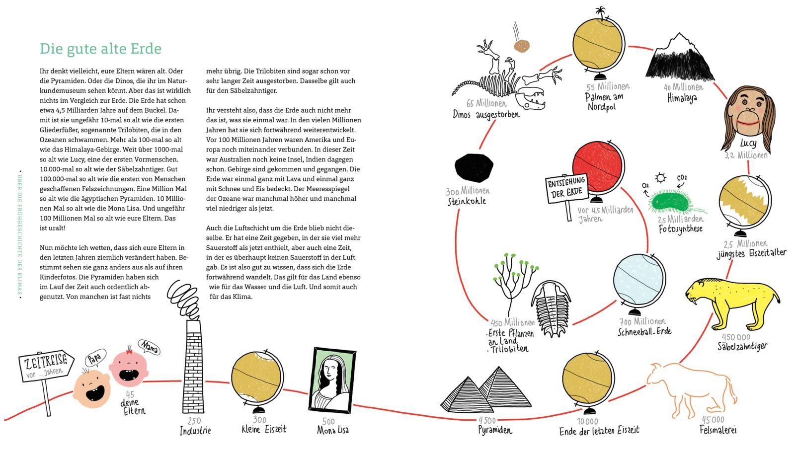 In verständlicher und lockerer Sprache werden pro Doppelseite einzelne Themenblöcke wie die Eiszeit, der Meeresspiegelanstieg und den Treibhauseffekt erklärt und um witzige Illustrationen und Grafiken ergänzt. So können sich Kinder gezielt über komplexe Zusammenhänge informieren und sich Wissen für Referate und Diskussionen in der Grundschule und darüber hinaus aneignen. Ein Buch für alle Kinder, denen die Zukunft der Erde am Herzen liegt, und die nicht nur mitreden, sondern auch handeln wollen.