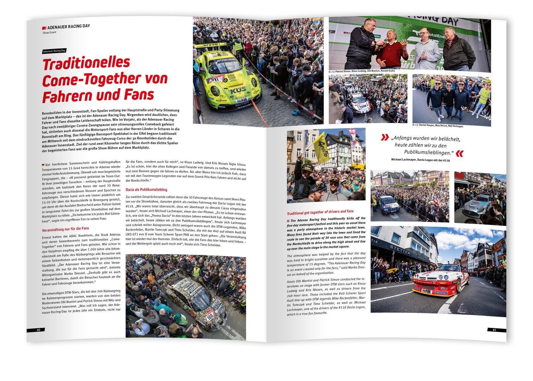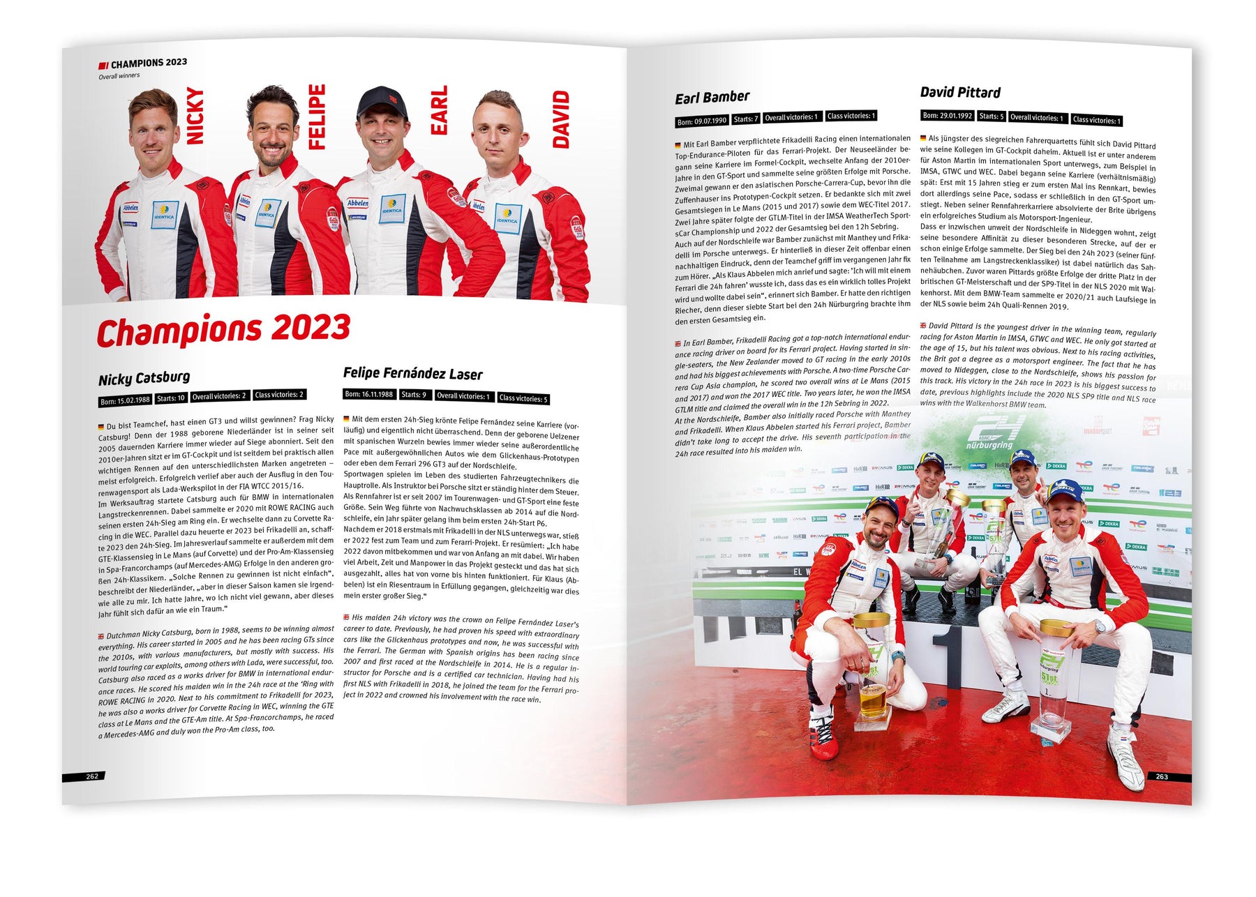Was für ein Rennen! Die ADAC TotalEnergies 24h Nürburgring boten 2023 einmal mehr die ganze Bandbreite von Emotionen, die es eben nur bei diesem Langstreckenklassiker auf der längsten und schönsten Rennstrecke der Welt gibt. Nach der Doppel-Pole für Mercedes-AMG von Bilstein / GetSpeed wurde das Rennen zu einer Triumphfahrt für Frikadelli-Racing, deren gerade erst debütierter Ferrari 296 GT3 damit einen fulminanten Einstand feierte. Bis in die Schlussphase war der erste Sieg der Frikadelli-Mannschaft gefährdet, denn der am Ende zweitplatzierte ROWE-BMW sowie der aus der ersten Reihe gestartete GetSpeed-Mercedes-AMG hetzten die Mannschaft aus der Eifel bis zuletzt. Kein Wunder, dass die 235.000 Zuschauer am Wochenende deshalb die schnellsten 24h aller Zeiten erlebten: 162 Runden legten die Sieger zurück - das entspricht 4.035,102 Kilometern Vollgas! Natürlich sorgte aber nicht nur der spektakuläre Kampf um den Gesamtsieg für Hochspannung: Dass der zweitplatzierte BMW zuvor eine grandiose Aufholjagd bot oder dass nach dem Top-Qualifying in der Werkstatthalle von Frikadelli ein havarierter Konkurrent seinen Mercedes-AMG wieder flottmachte oder oder oder ... Es sind unzählige Geschichten, die wert sind, festgehalten zu werden. Dazu zählt selbstverständlich auch der Fight um Sekt und Selters in den 20 Klassen. Schließlich wird bei den 24h nicht nur an der Spitze des Feldes ultraspannender Motorsport geboten. 132 Fahrzeuge traten in diesem Jahr bei den 24h an, und jedes einzelne ist in diesem Buch zu finden. Und nicht nur das: Vom Adenauer Racing Day bis zum Siegersekt ist die ganze Veranstaltung dokumentiert, auch die 24h Classic, die Cup- und Tourenwagen-Trophy, die RCN sowie die Tourenwagen-Legenden dürfen nicht fehlen. Ein ausführlicher Statistik-Teil inklusive der Ergebnisse macht das Jahrbuch zum besten Schmöker und Nachschlagewerk für alle, deren Herz für die Grüne Hölle schlägt.