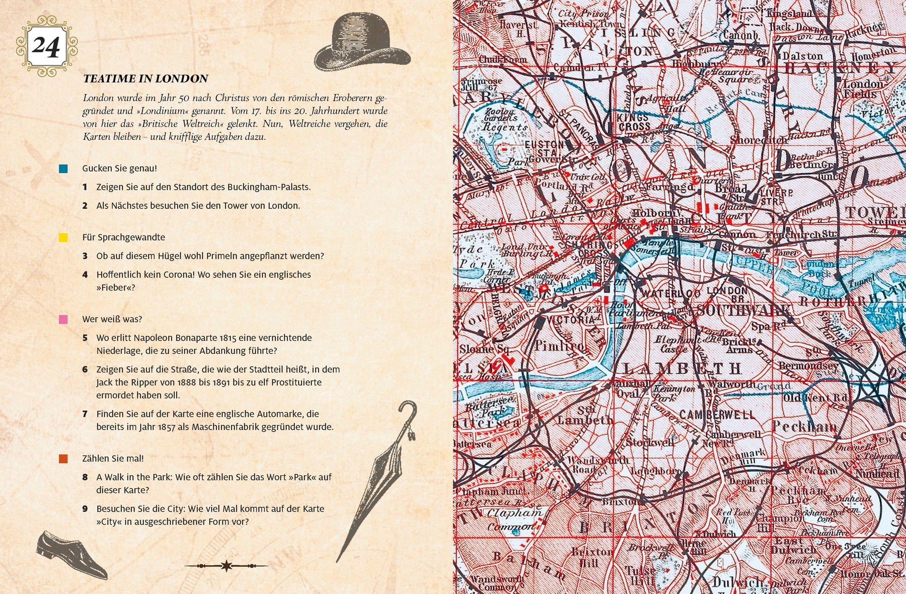 Freuen Sie sich auf einen abwechslungsreichen Rätselspaß mit alten Karten, Stadtplänen, Silhouetten und Flaggen!