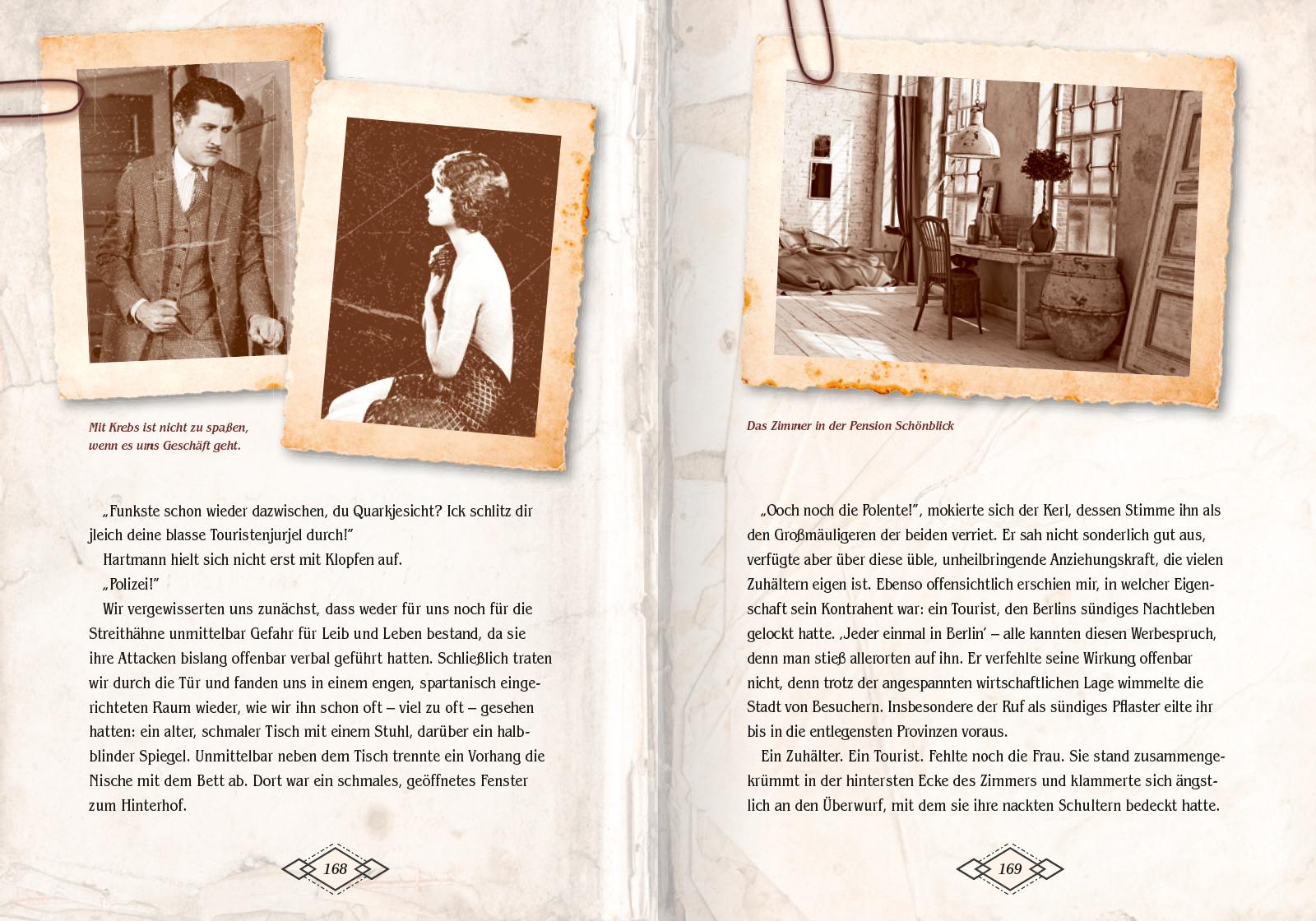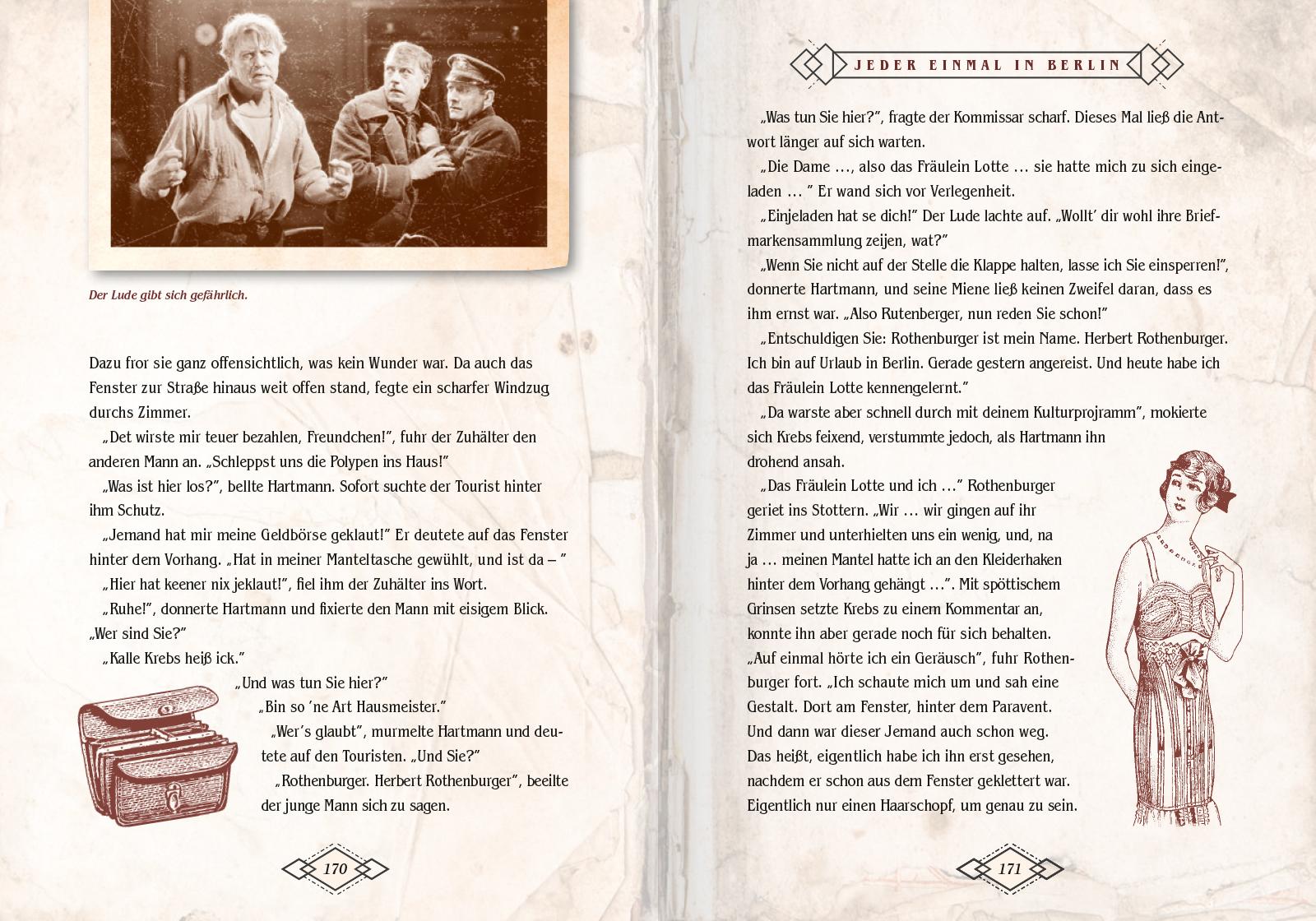 Werden Sie zum Ermittler! Berlin 1922 - eine Stadt zwischen Vergnügen und Verbrechen. Der knorrige Kommissar Gunther Hartmann und seine aufstrebende Assistentin Rosalie Menzel sind beauftragt, eine Reihe geheimnisvoller Kriminalfälle aufzuklären. Folgen Sie Hartmann und Menzel in die mondäne Welt des Stummfilms, in elegante Stadtvillen und ins verrufene Scheunenviertel. Tauchen Sie ein in 11 spannende, reich illustrierte Geschichten mit viel Zeitkolorit und werden Sie selbst zum Ermittler: Finden Sie Antworten auf eine Reihe tatrelevanter Fragen und kommen Sie dem Täter auf die Schliche! Unabdingbar sind eine gute Kombinationsgabe, logisches Denken und akribische Detektivarbeit