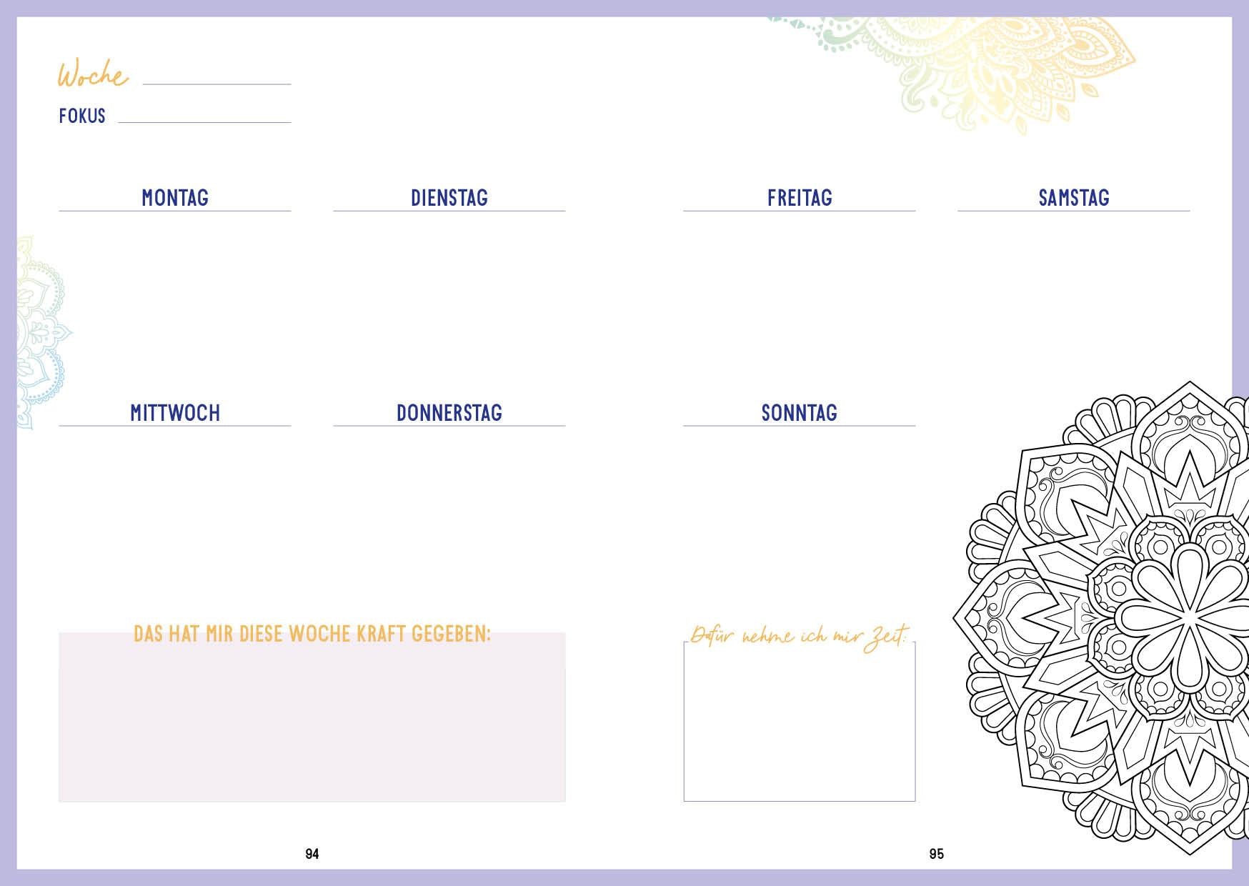 Mit den vorillustrierten Wochenübersichten, Trackern, Listen und Tipps für mehr Achtsamkeit und Ruhelassen sich digitale Auszeiten planen und wunderschön gestalten. Werde selbst kreativ und finde Entspannung im Ausmalen von Mandalas. Entschleunige deinen Alltag!