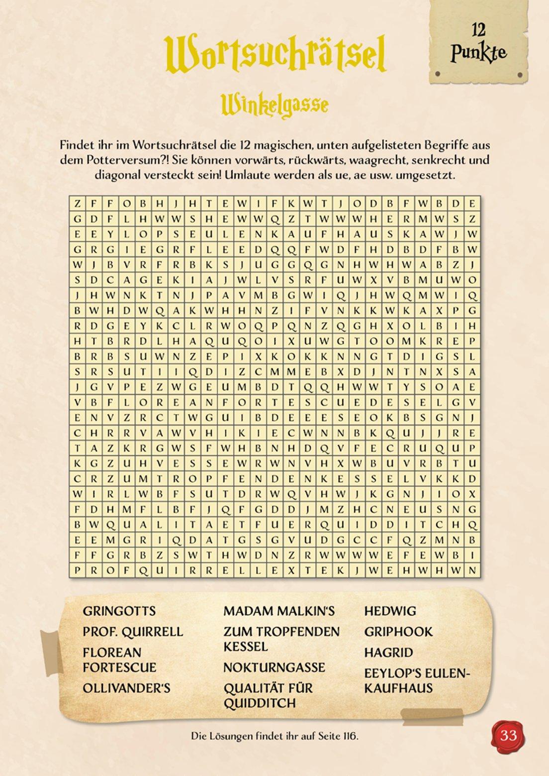 Taucht in die magische Welt von Harry, Ron und Hermine ein und rätselt euch durch Hogwarts! Du denkst, du kennst dich im Potterversum aus, kannst alle Film- und Buchzitate auswendig und bist ein wahrer Harry Potter-Fan? Dann stelle dein Können unter Beweis! Finde den Weg aus dem Irrgarten zum Trimagischen Pokal, entzaubere Silbendreher und quizze dich zum Hauspokal-Sieg! Von echten Rätselklassikern für echte Potterheads bis hin zu einfacheren Rätseln für neue Zauberschüler, erwarten euch aber auch vollkommen neue Rätselarten wie ein Emojiquiz und absolute Lieblingsthemen der Online-Community! Beweise, dass du ein echter Potterhead bist und meistere, allein oder mit Freunden, über 200 knifflige Fragen rund um den wohl berühmtesten Zauberlehrling der Welt!