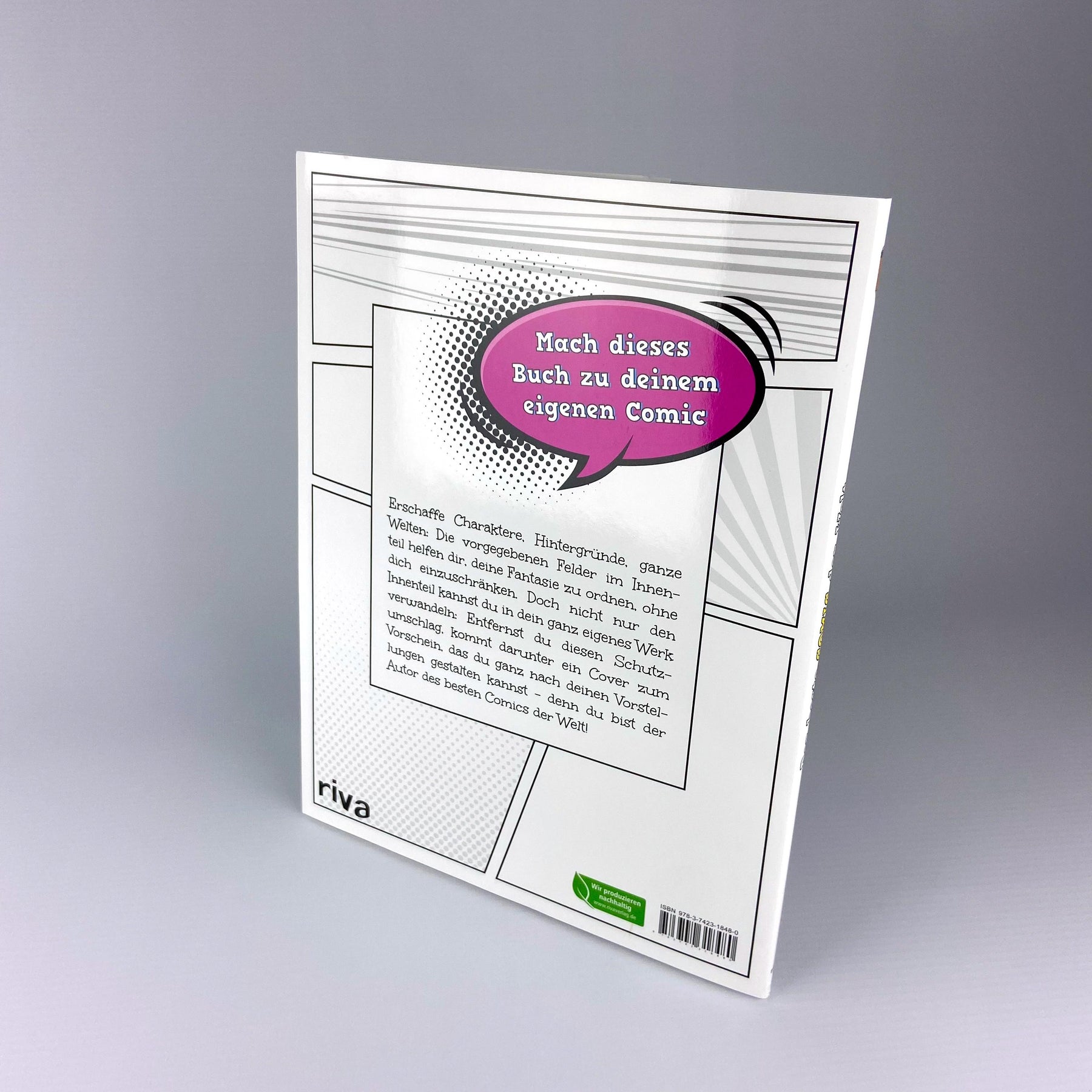 Erschaffe Charaktere, Hintergründe, ganze Welten: Die vorgegebenen Felder im Innenteil helfen dir, deine Fantasie zu ordnen, ohne dich einzuschränken. Doch nicht nur den Innenteil kannst du in dein ganz eigenes Werk verwandeln: Entfernst du diesen Schutzumschlag, kommt darunter ein Cover zum Vorschein, das du ganz nach deinen Vorstellungen gestalten kannst – denn du bist der Autor des besten Comics der Welt!