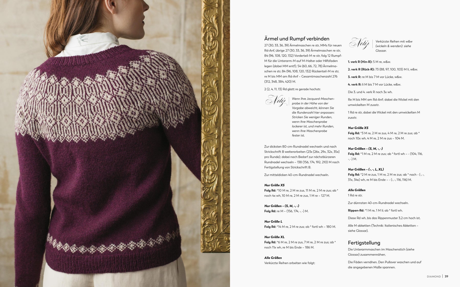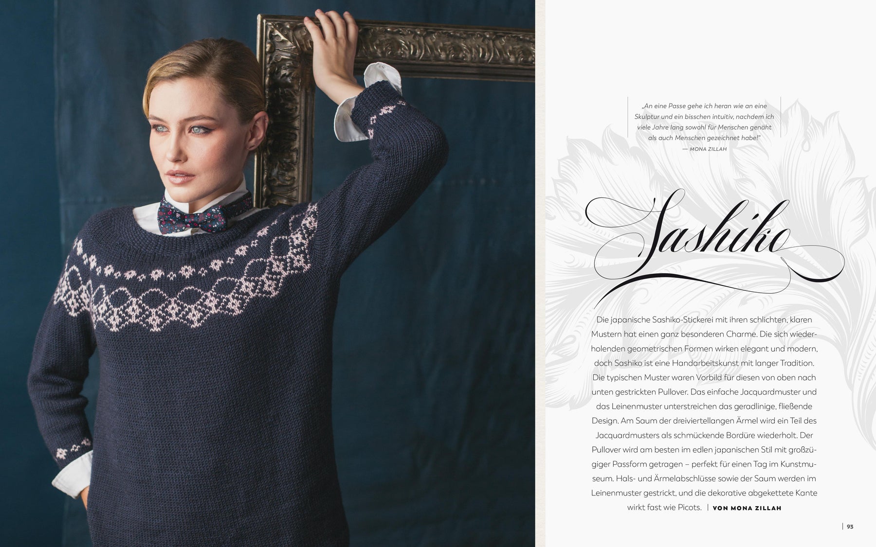 Wer sein neu erworbenes Wissen gleich umsetzen möchte, findet 15 ausgefallene Pullover und Strickjacken zum Nachstricken. Ungewöhnlich fotografiert ist »Die perfekte Rundpasse« ein echter Hingucker.