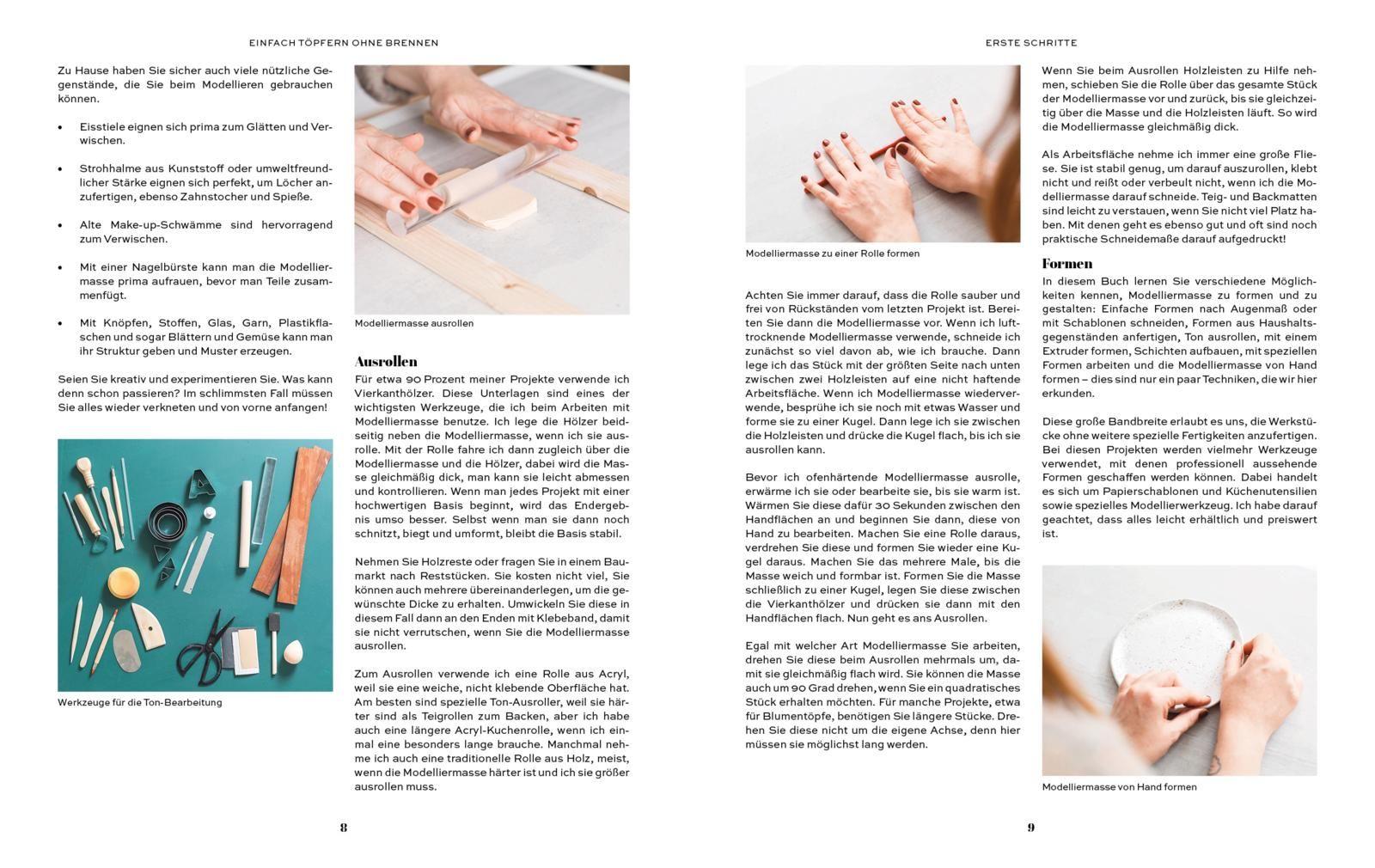 Handwerk trifft Design: Projekte im Keramik-Look für das eigene Zuhause gestalten Vasen, Schalen, Pflanzgefäße und vieles mehr ohne Töpferwerkstatt selbst herstellen! Lassen Sie sich überraschen, was Sie mit Modelliermasse alles herstellen können. Dieses Material bietet unendlich viele Möglichkeiten für hochwertige Deko und individuelle Geschenke. Machen Sie Ihr Zuhause zur Keramik-Manufaktur und gestalten Sie ganz besondere Töpferwaren, ohne die Kosten und Herausforderungen, die traditionelle Töpferei mit sich bringt. Schritt-für-Schritt zeigt das Buch einfache Techniken, um mit nur wenigen Haushaltswerkzeugen 40 stylische Projekte im Keramik-Look zu gestalten. Alle fertigen Stücke können an der Luft getrocknet oder in einem normalen Ofen gebacken werden. Verwirklichen Sie Ihre kreativen Ideen und bereichern Sie Ihr Zuhause mit stilvollen Unikaten.