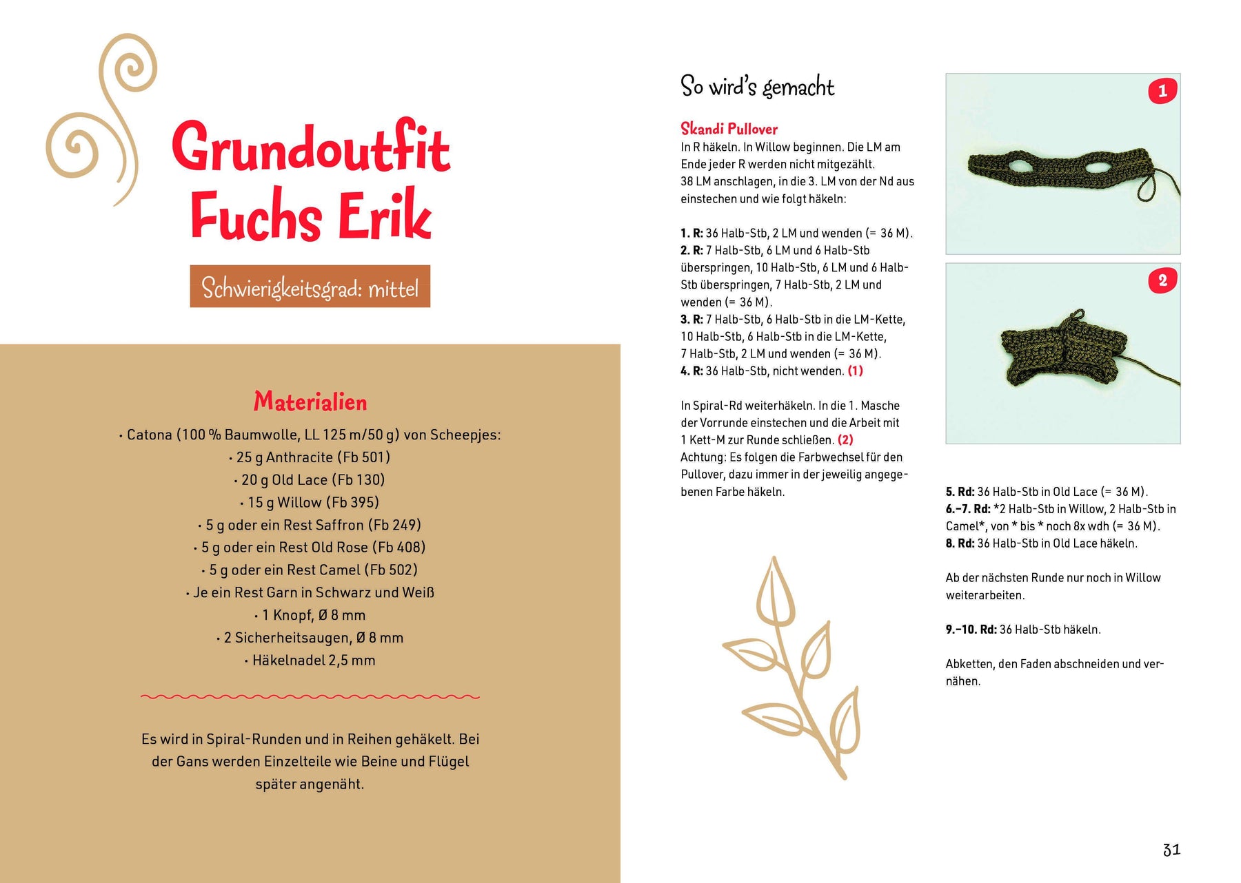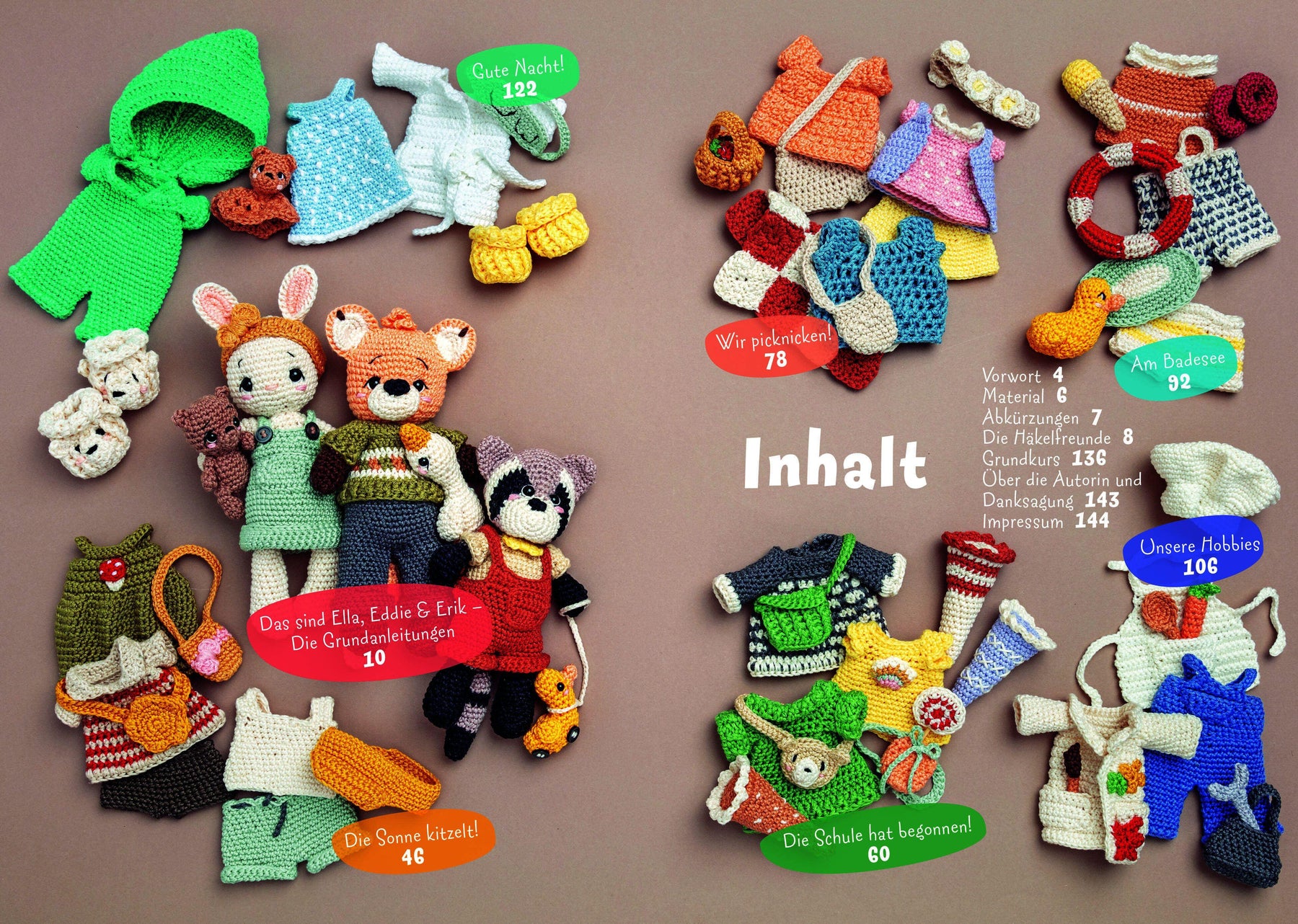 Auf ein Abenteuer geht es mit den drei Häkelfreunden Ella, Eddie & Erik: häkeln, kuscheln und umziehen, so oft man will! Denn diese drei kommen mit einem ganzen zauberhaften Kleiderschrank daher: Egal ob es zur Schule geht, zum Picknick, zum Badesee oder in die Eisdiele - die drei Kuscheltiere haben immer das passende Outfit parat. Alle gehäkelten Kleidungsstücke und Accessoires kann man nach Lust und Laune untereinander kombinieren.