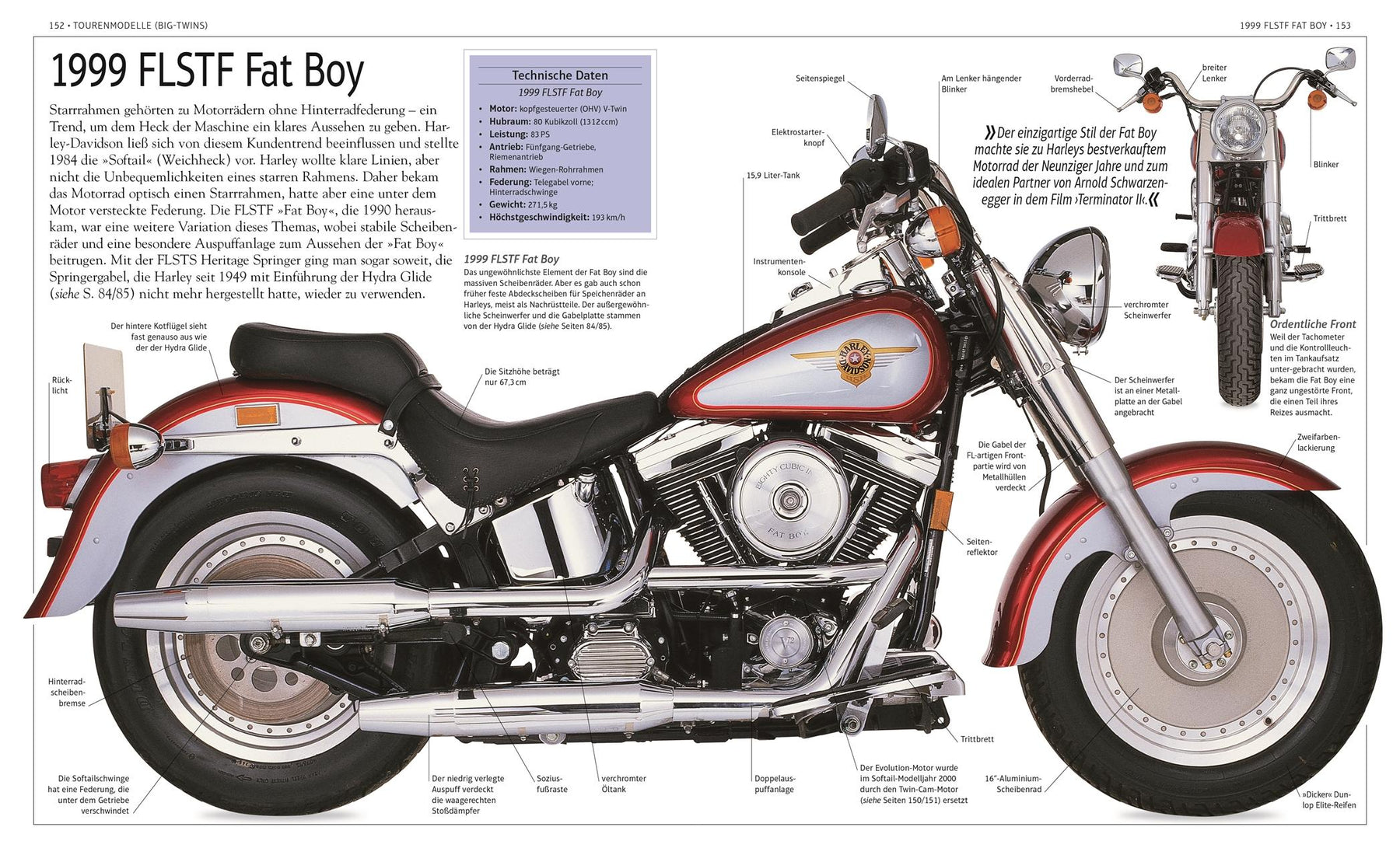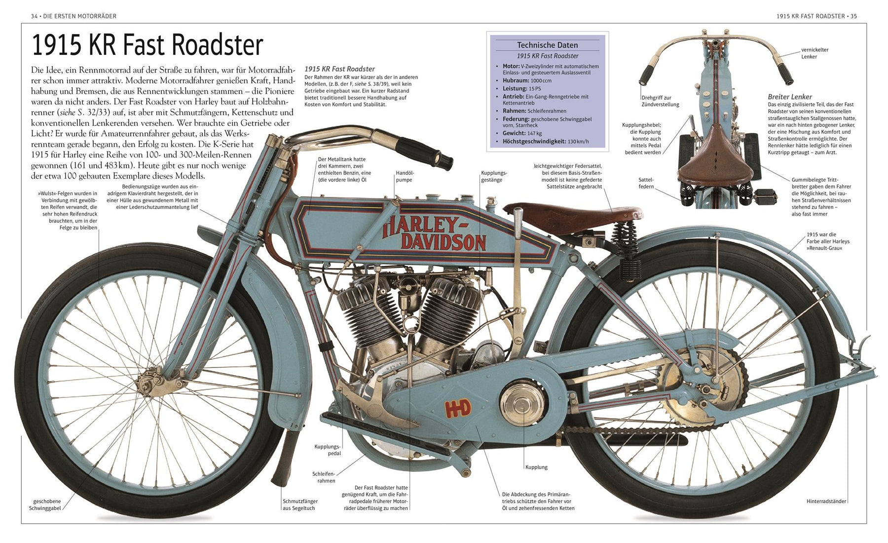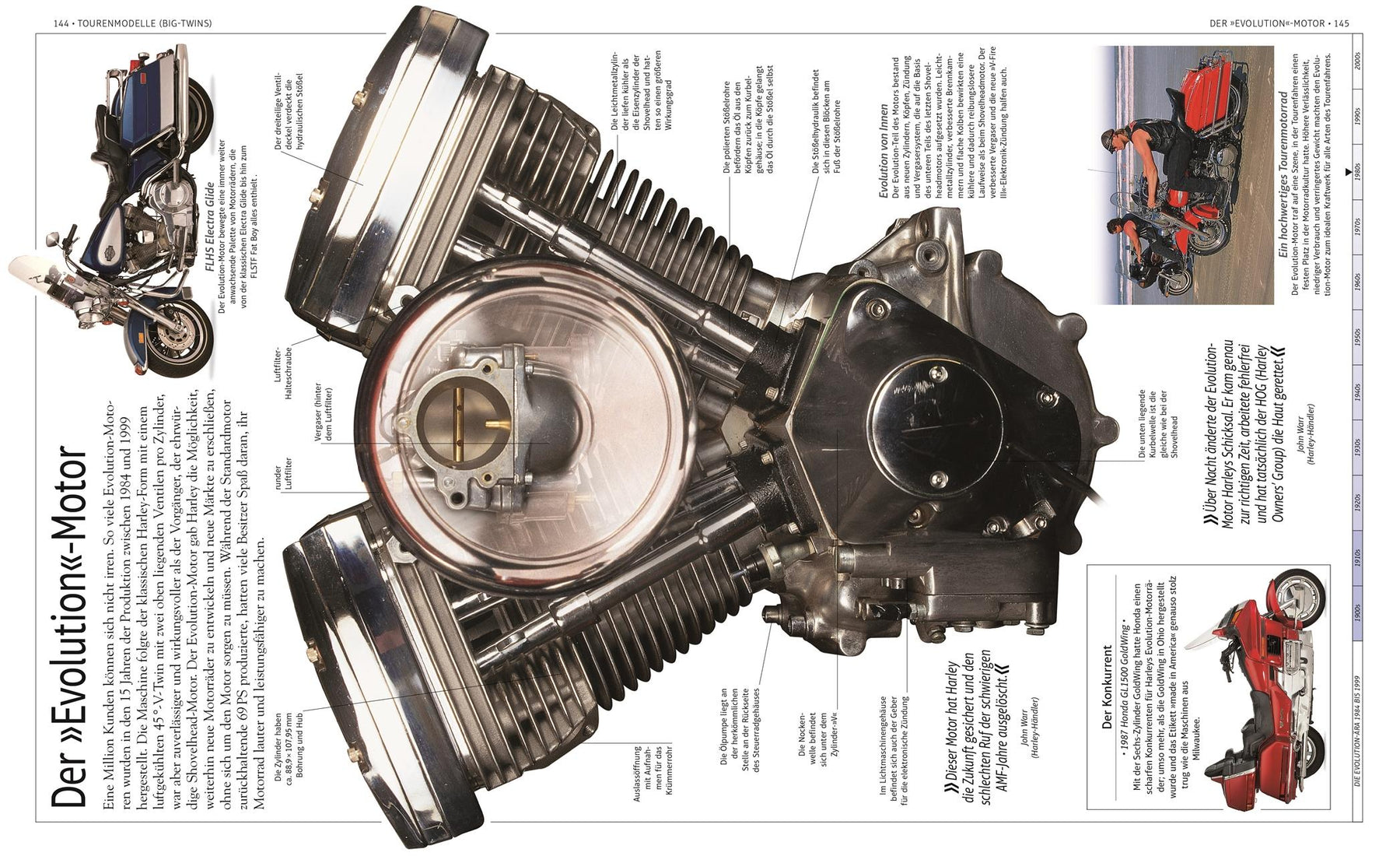 ¿ Doppelseitige Modell-Fotos mit vielen Details, technischen Steckbriefen und wichtigen Innovationen für Motorrad Fans