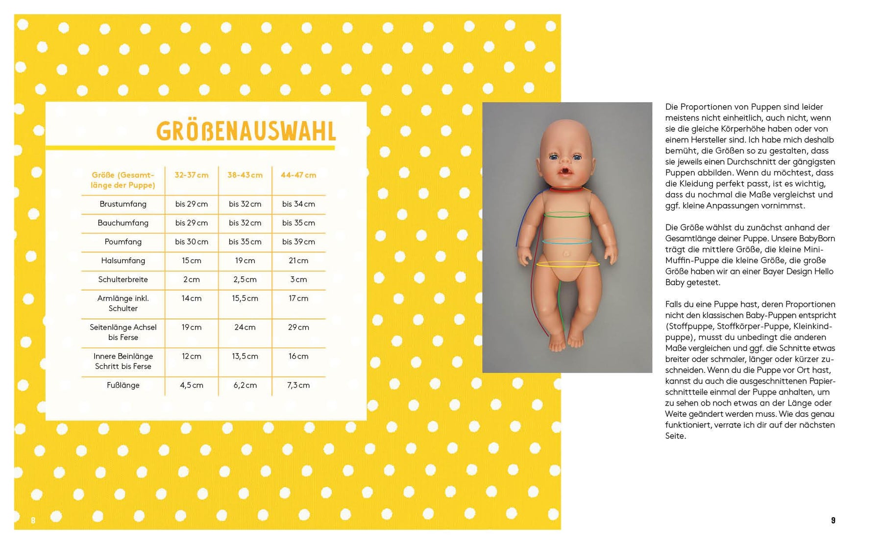 - drei Puppengrößen als Basis, mit einfacher Anpassungsanleitung für andere Puppen(größen)