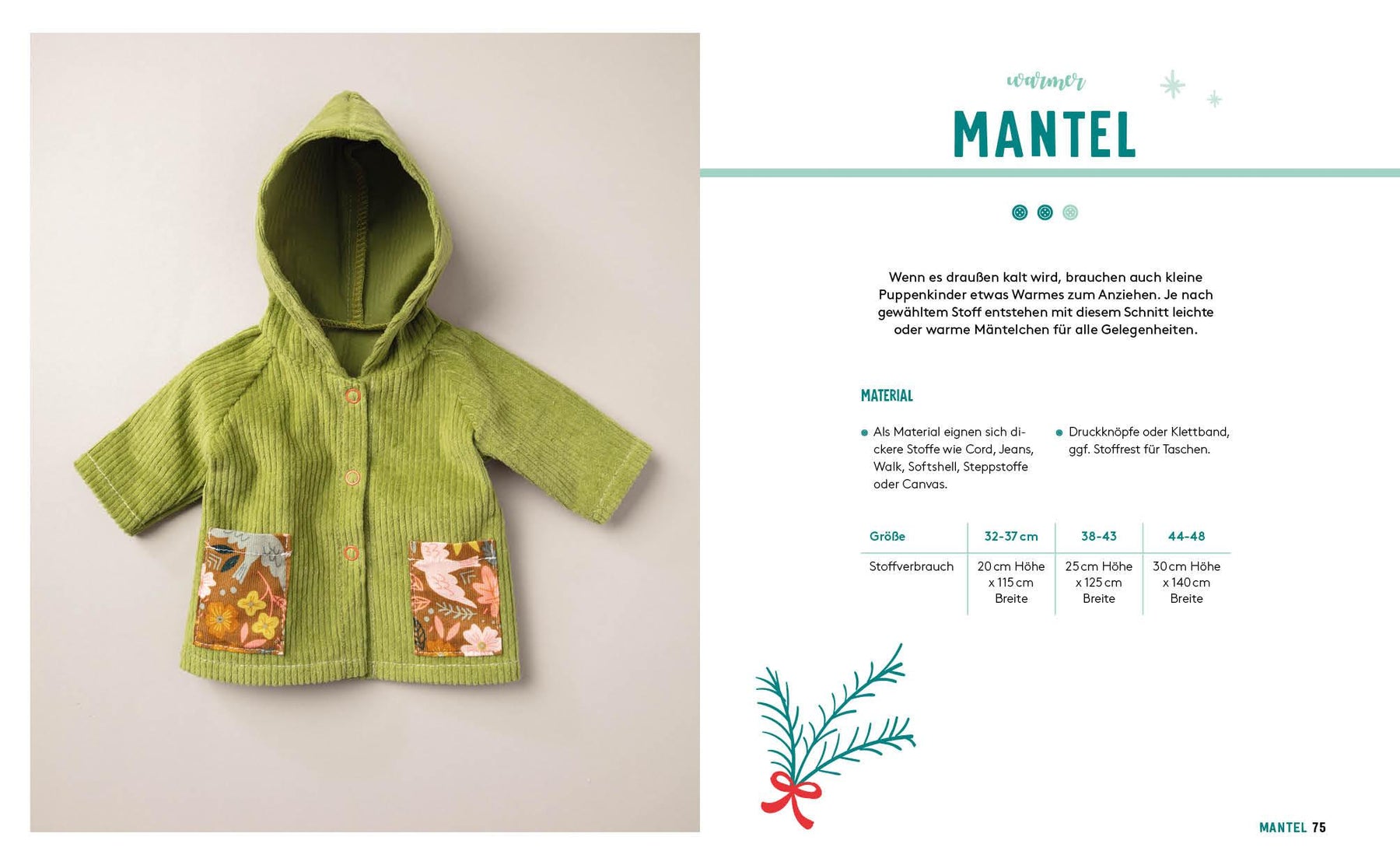 Du möchtest der Lieblingspuppe einer kleinen Puppenmama ein stylisches Outfit nähen und bist auf der Suche nach hübschen und einfach zu nähenden Schnitten? Die niedlichen Kleidungsstücke lassen sich dank 3 verschiedener Schnittgrößen und Änderungsanleitung ganz leicht an individuelle Puppengrößen anpassen. Mit den süßen Nähprojekten ist die kleine Spielgefährtin bestens für alle Eventualitäten des Puppenalltags ausgestattet.