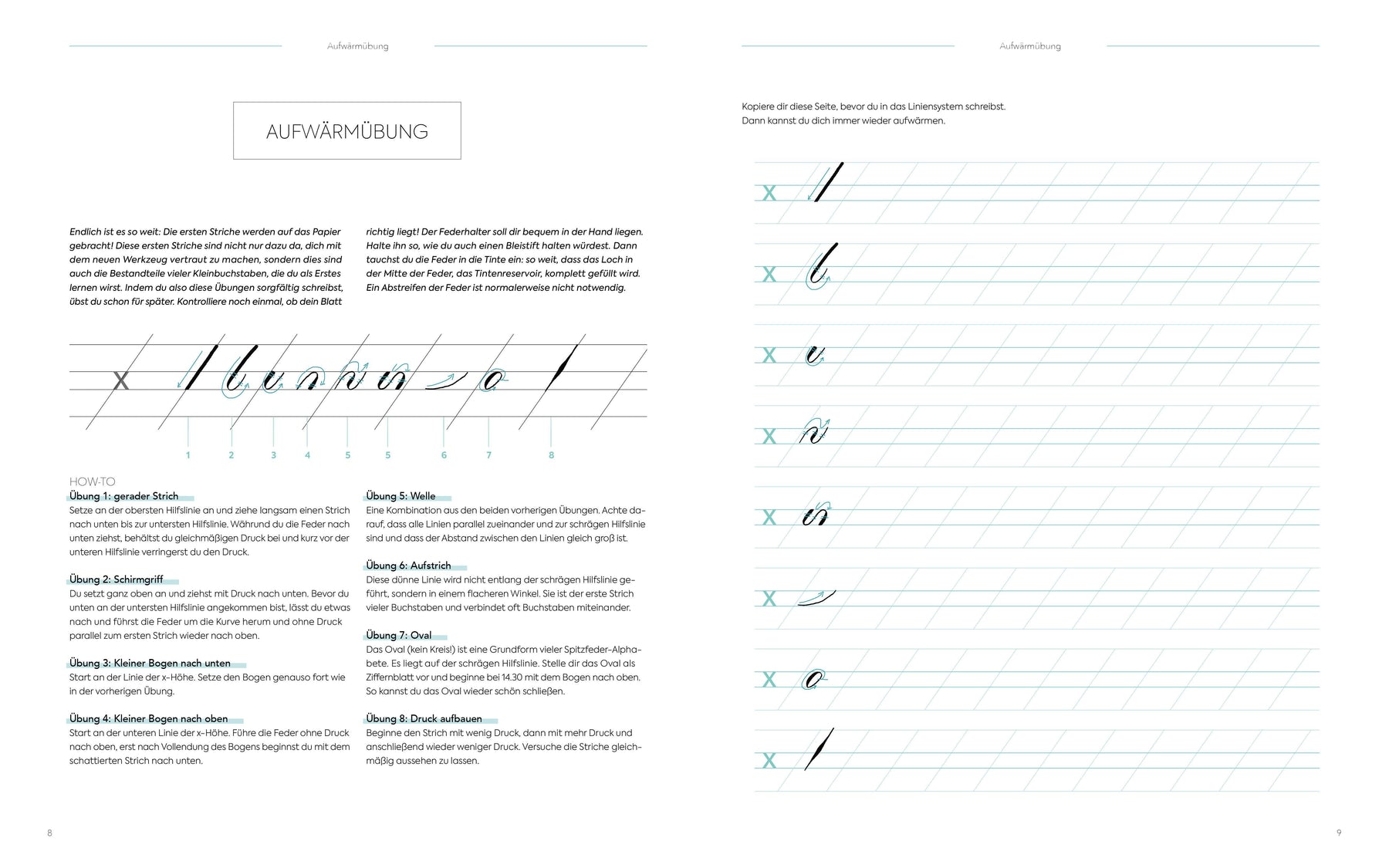 Die perfekte Ergänzung zu "Moderne Kalligrafie von A bis Z": Mit dem Workbook kann man die vielen Schriften aus dem Buch mit Anleitung und Linienraster direkt im Heft üben. Aufwärmübungen, Schwungübungen und unterschiedliche Alphabete können so ganz einfach nachgezeichnet werden. Natascha Safarik von Tintenfuchs unterstützt jeden mit vielen Tipps zu Material, Handhaltung und Anordnung der Elemente, so dass jeder schnell zu wunderschönen eigenen Ergebnissen gelangt. Mit dem hochwertigen Spezialpapier gibt es kein Durchdrücken. Der Kalligrafie-Workshop für Zuhause - ausprobieren, üben, jubeln!