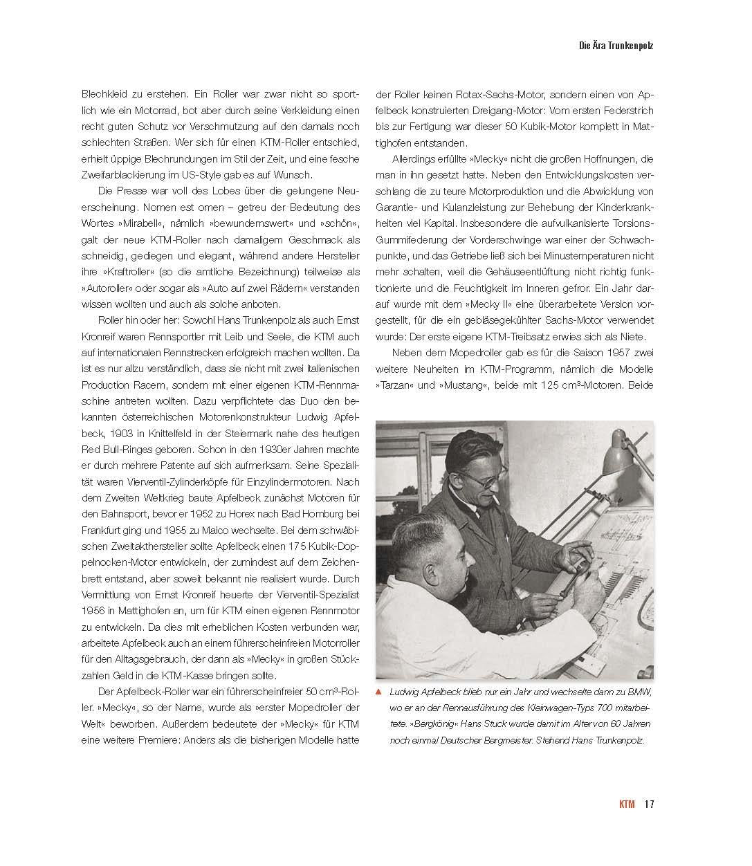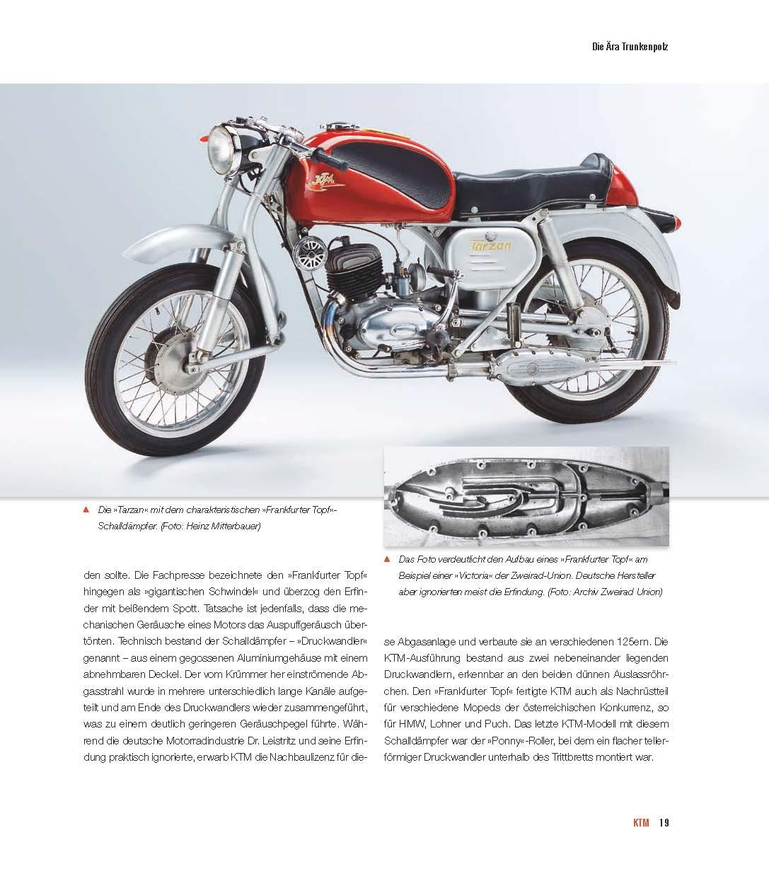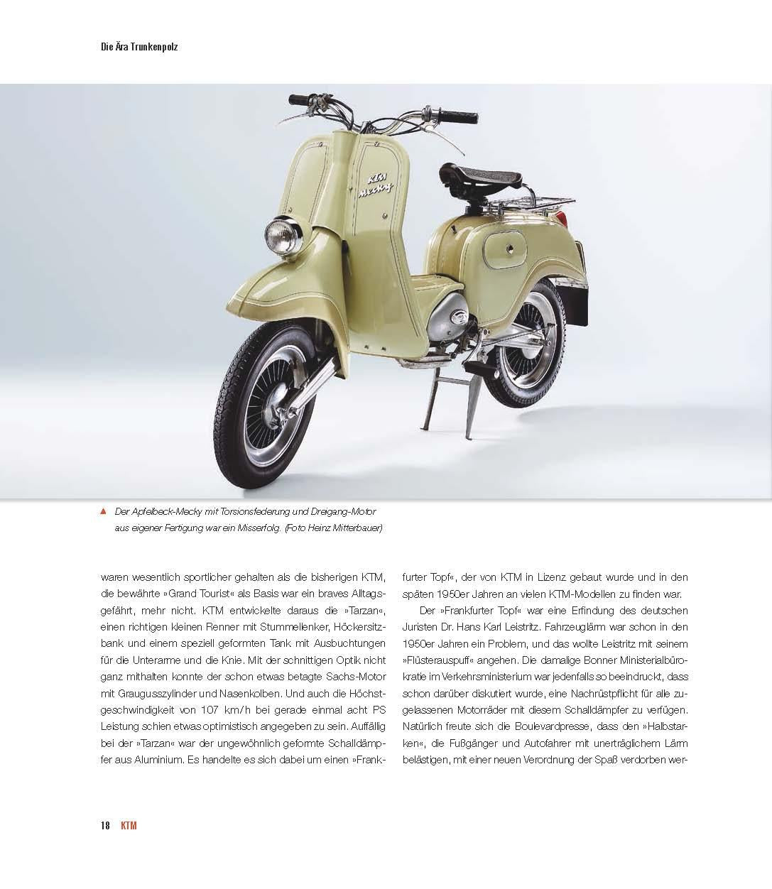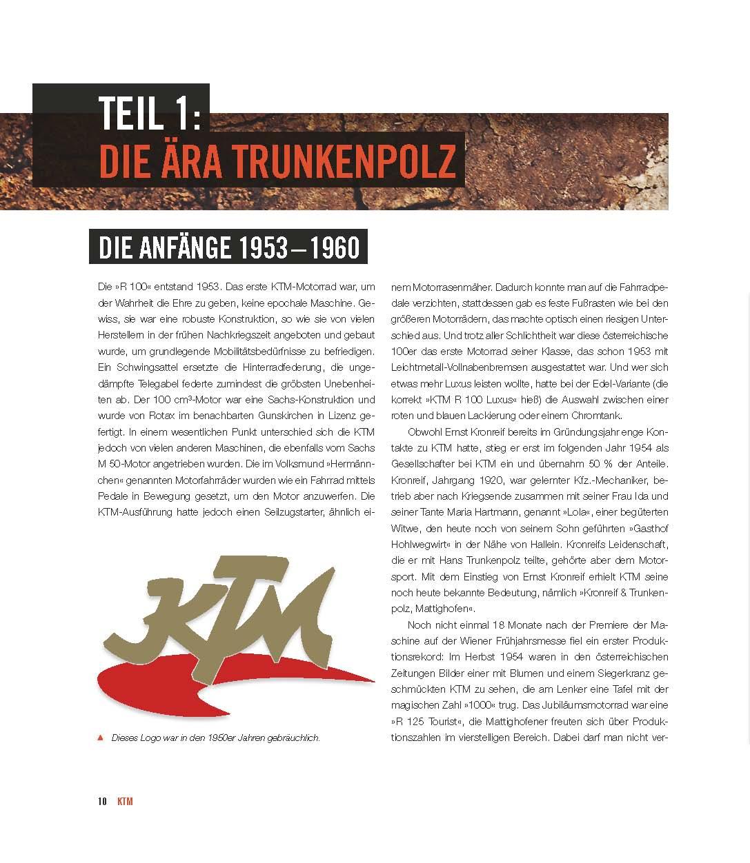 KTM zählt heute zu den angesagtesten Motorradmarken und ist derzeit der erfolgreichste europäische Hersteller von Enduro- und Motocross-Maschinen. Die österreichische Firma entwickelt sich zur ernsthaften BMW-Rivalin und hat die bayerische Edelmarke bereits, von den Produktionszahlen, überholt. Leo Keller liefert in diesem Band alle wesentlichen Infos über die Geschichte der österreichischen "Kult-Marke", inklusive der Frühgeschichte. Akribisch recherchiert und ausführlich dokumentiert, gibt der Autor einen umfassenden Überblick über alle KTM-Modelle seit Bestehen der Marke im Jahre 1953 und deren eminent wichtigen Beteiligungen im Motorsport.
