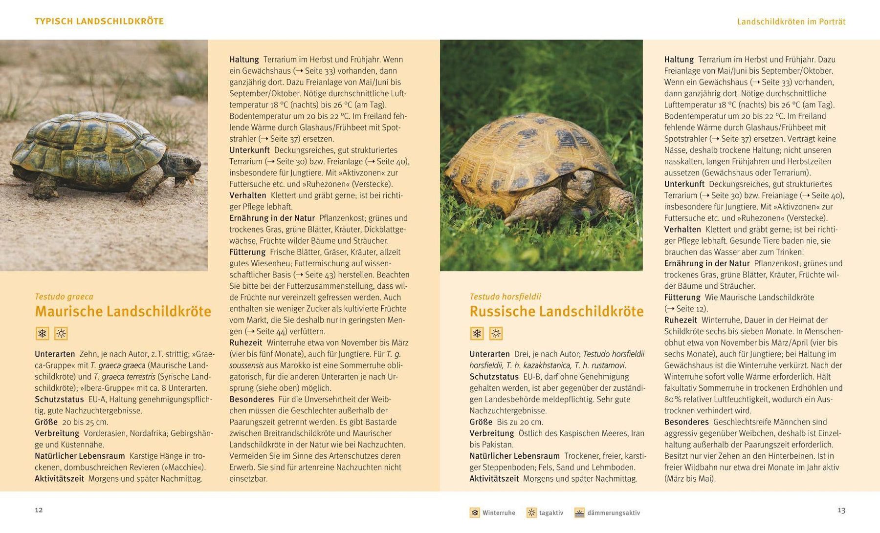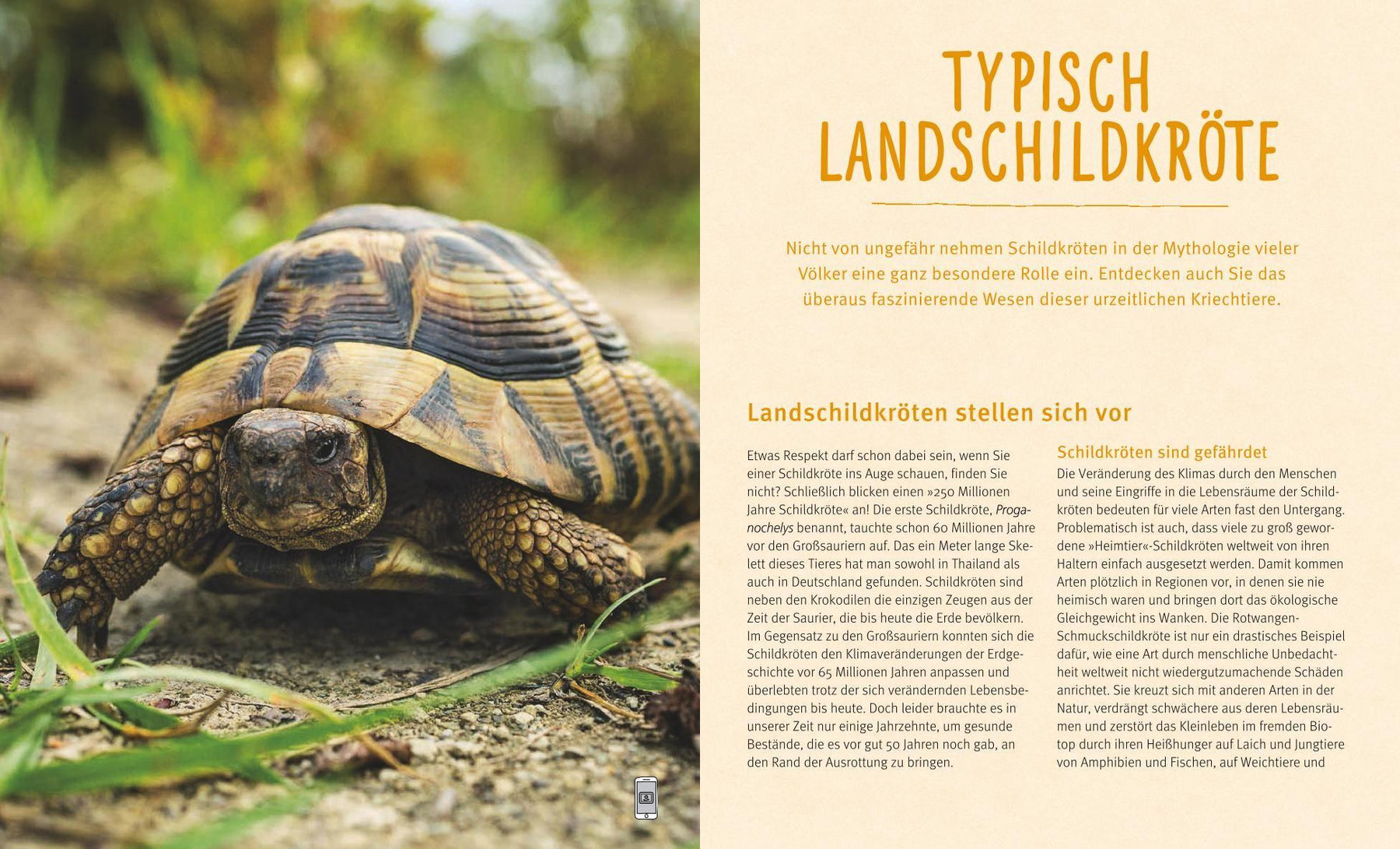 Schildkröten faszinieren, sind sie doch Zeugen aus vergangenen Zeiten. Auch wegen ihrer außergewöhnlichen Anatomie und ihrer gemächlichen Art, sich durchs Leben zu bewegen, haben sie eine große Fangemeinde. Der Schildkröten-Experte Dr. Hartmut Wilke erläutert im GU Tierratgeber Landschildkröten alles Wichtige rund um die Haltung von Landschildkröten - von Auswahl und Eingewöhnung über Pflege, Ernährung und Gesundheit bis hin zur Beschäftigung. Mit ausführlichen Landschildkröten-Porträts sowie vielen Tipps und Ideen für schöne Terrarien, Freilandanlagen und Balkongehege. Darüber hinaus gibt es Infos zur richtigen Überwinterung. Außerdem erhalten Sie praktischen Rat, falls es zu Problemen bei der Haltung kommt. Der Verhaltensdolmetscher erklärt typische Verhaltensweisen der Landschildkröten. Und mit SOS - was tun? ist Hilfe im Notfall garantiert. Als Extra gibt's die GU Heimtier Plus-App. Damit wird der Tierratgeber interaktiv und hält weitere interessante Zusatzinfos und Bilder bereit.