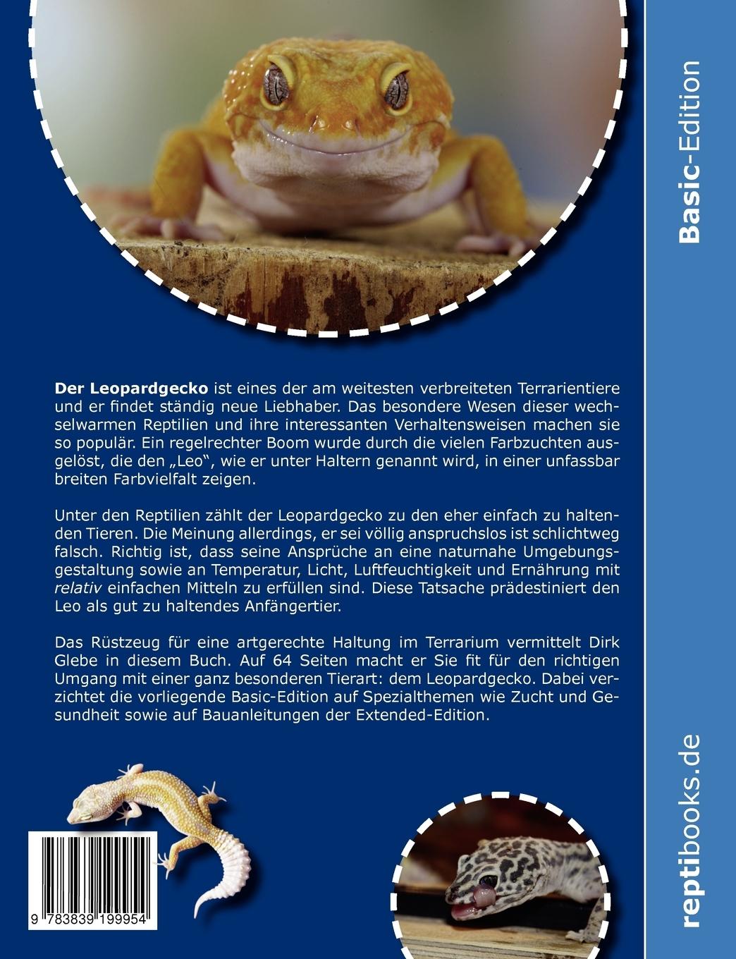 Der Leopardgecko ist eines der am weitesten verbreiteten Terrarientiere und er findet ständig neue Liebhaber. Das besondere Wesen dieser wechselwarmen Reptilien und ihre interessanten Verhaltensweisen machen sie so populär. Ein regelrechter Boom wurde durch die vielen Farbzuchten ausgelöst, die den "Leo", wie er unter Haltern genannt wird, in einer unfassbar breiten Farbvielfalt zeigen. Unter den Reptilien zählt der Leopardgecko zu den eher einfach zu haltenden Tieren. Die Meinung allerdings, er sei völlig anspruchslos ist schlichtweg falsch. Richtig ist, dass seine Ansprüche an eine naturnahe Umgebungsgestaltung sowie an Temperatur, Licht, Luftfeuchtigkeit und Ernährung mit relativ einfachen Mitteln zu erfüllen sind. Diese Tatsache prädestiniert den Leo als gut zu haltendes Anfängertier. Das Rüstzeug für eine artgerechte Haltung vermittelt Dirk Glebe in diesem Buch. Auf rund 60 Seiten macht er Sie fit für den richtigen Umgang mit einer ganz besonderen Tierart: dem Leopardgecko. Besonders an diesem aktuellen Titel ist, dass fast 50 etablierte Züchter durch Text- und vor allem Bildbeiträge geholfen haben, für eine nahezu einzigartige Gestaltung zu sorgen. Damit ist dieses Buch nicht nur ein detailliertes Nachschlagewerk, sondern auch ein interessanter Bildband. An dieser Stelle wird Ihnen die Basic-Version im preiswerten Paperbackeinband angeboten. Diese richtet sich vor allem an Einsteiger, die ein gutes Basiswissen zum Leopardgecko bekommen möchten. Die Bereiche Zucht, Genetik, Farbformen und Krankheiten werden in dieser Ausgabe nicht behandelt. Hierzu gibt es den gleichen Titel als "Extended-Edition" ebenfalls im Handel. Weitere Informationen bekommen Sie auf www.reptibooks.de