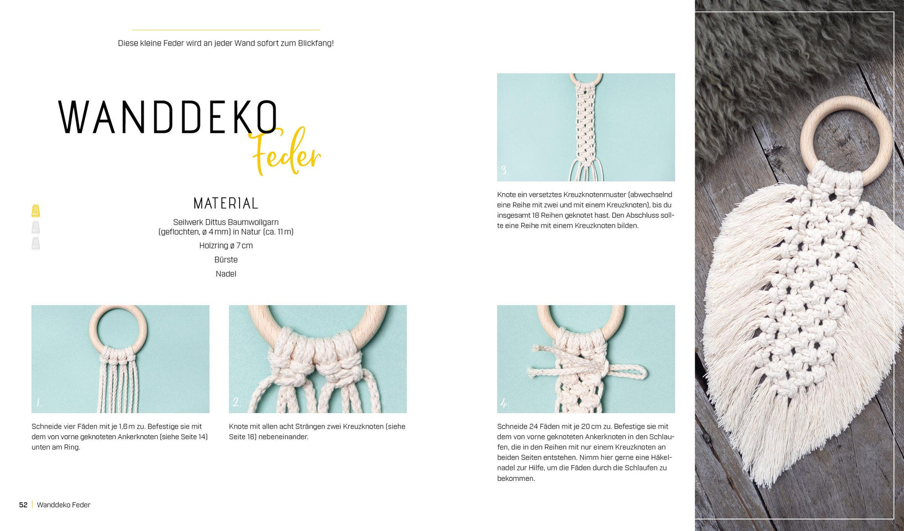 Mach mal Makramee! Trend-Alarm: Die einfachen und stylischen Knüpfprojekte verschönern in kürzester Zeit Wohnung und Garderobe Perfekt für Einsteiger: Dank bebilderter Schritt-für-Schritt-Anleitungen und anschaulicher Illustrationen gelingt das Nachknoten problemlos Vorsicht, Sucht-Gefahr: Ist der erste Schlüsselanhänger erstmal geknüpft, folgen Lesezeichen, Blumenampel, Wandbehang und die anderen schönen Makramee-Projekte in diesem Buch im Nu