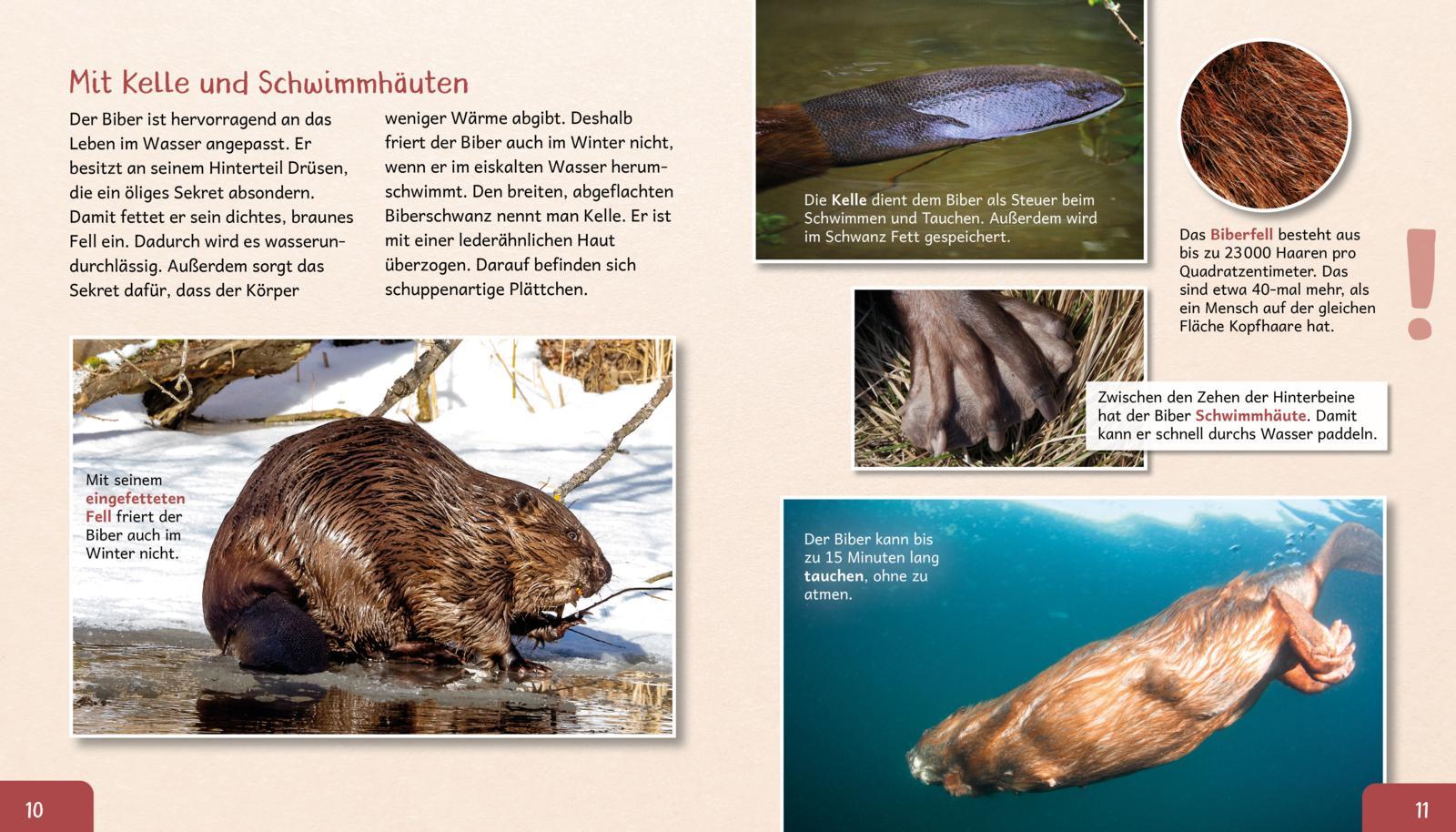 Kompaktes erstes Wissen über den Biber mit vielen Infos und Fotos zum Staunen