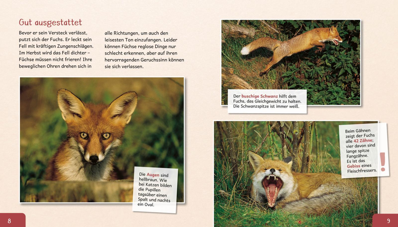 Kindersachbuch mit erstem Wissen über den Fuchs. Er lebt im Wald und geht erst in der Dämmerung geht er auf die Jagd. Sein ausgezeichneter Geruchssinn und die beweglichen Ohren helfen ihm bei der Orientierung. Das heimische Raubtier aus nächster Nähe erleben! Mit großartigen Fotos und großer Schrift für Kinder ab 5 Jahren. Zum Vorlesen und ersten Selbstlesen bestens geeignet. Ideal für erste Referate.