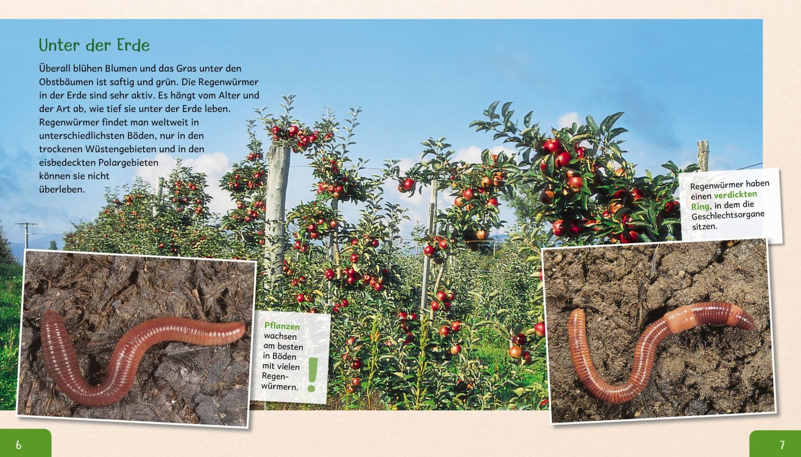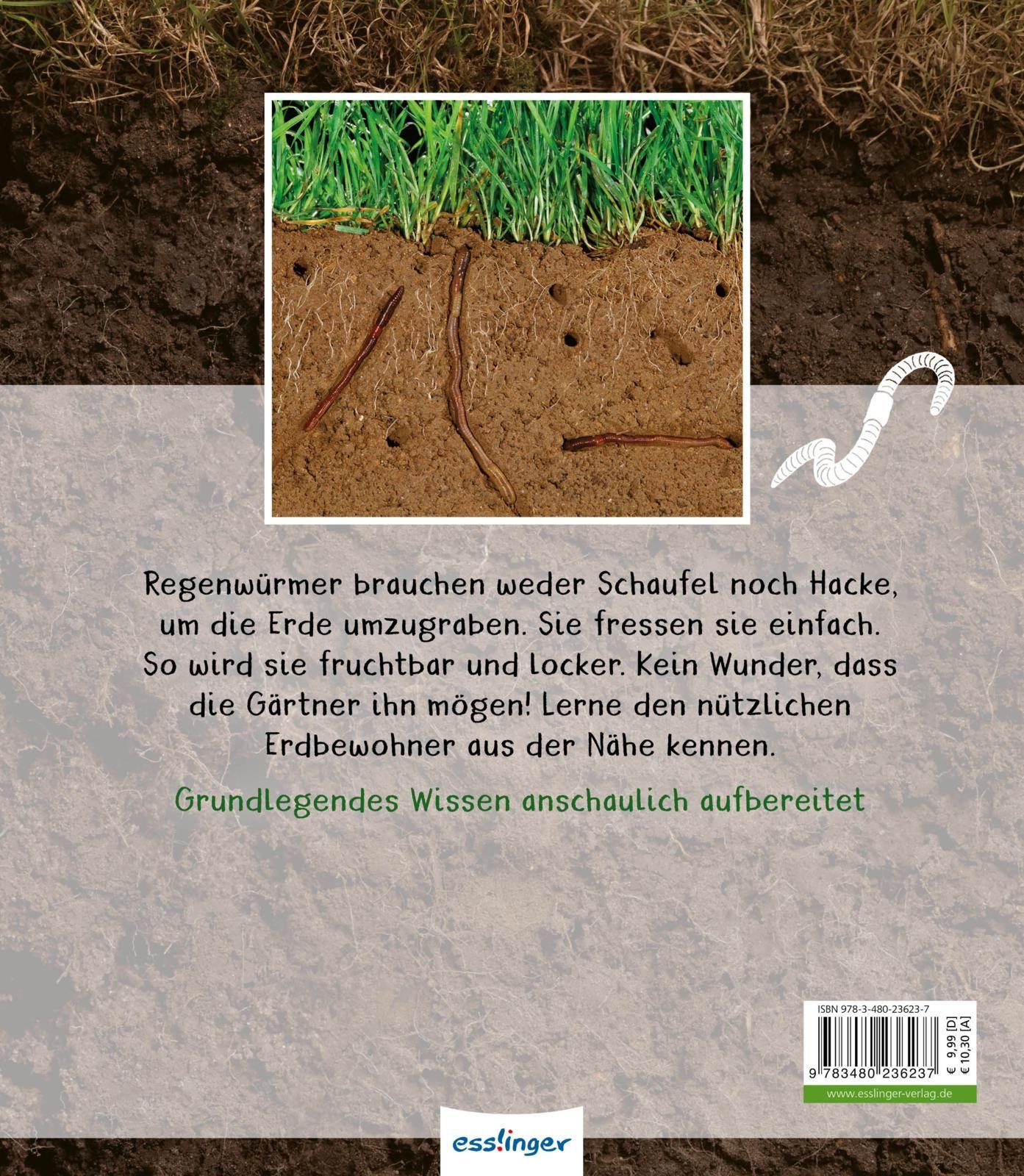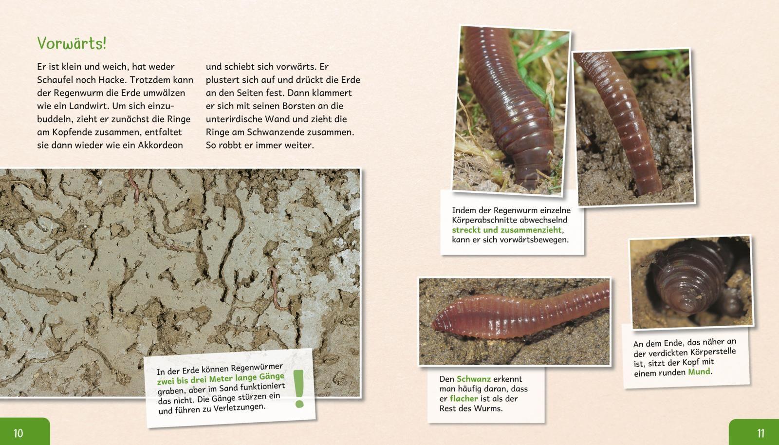 Kindersachbuch mit erstem Wissen über Regenwürmer, großartigen Fotos und großer Schrift für Kinder ab 5 Jahren. Zum Vorlesen und ersten Selbstlesen bestens geeignet. Ideal für erste Referate. Regenwürmer brauchen weder Schaufeln noch Hacken, um die Erde umzugraben. Sie fressen sie einfach. So wird sie fruchtbar und locker. Gärtner freuen sich über den nützlichen Erdbewohner. Hier erfährt man alles über das faszinierende Leben der Regenwürmer.