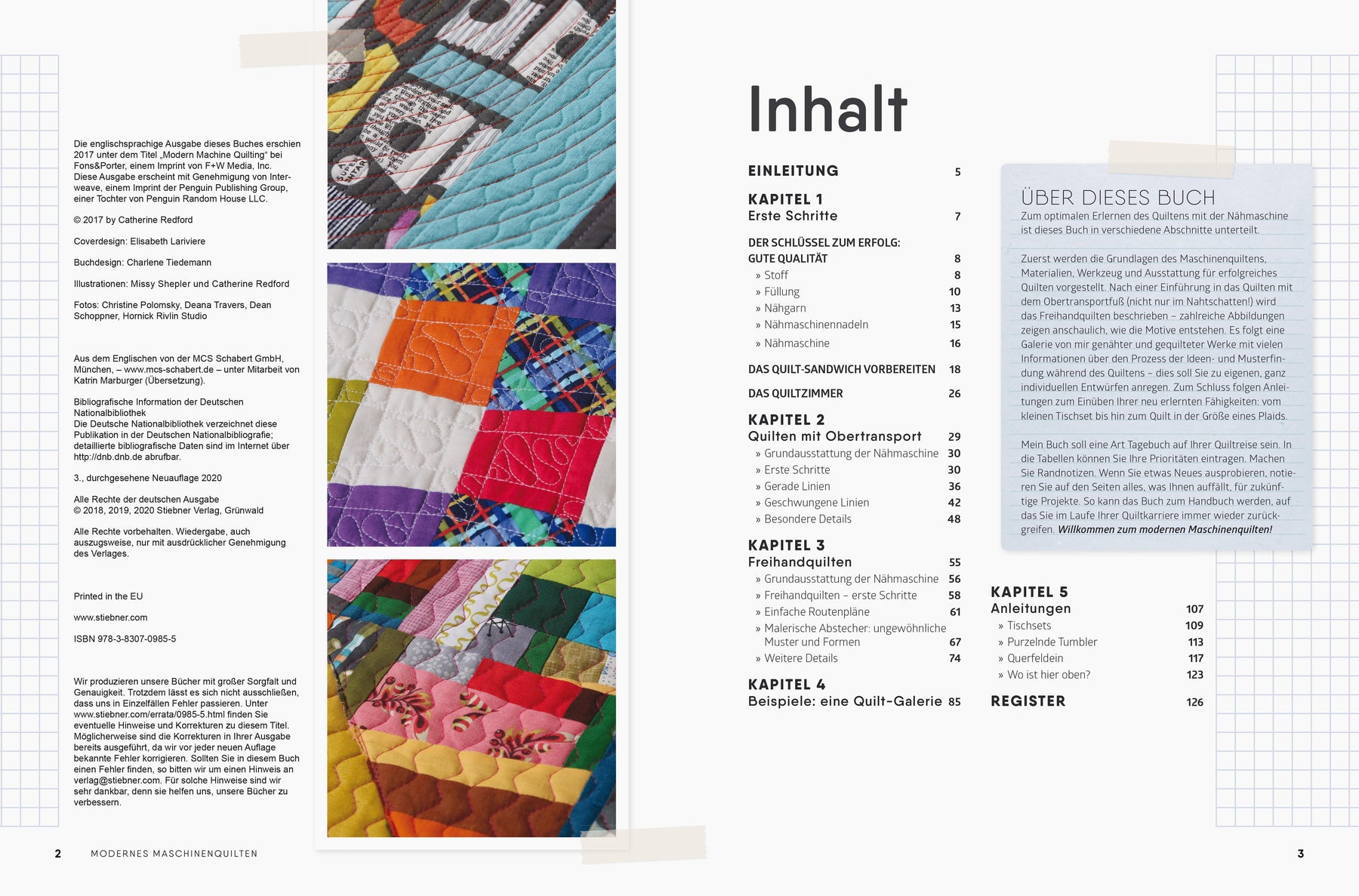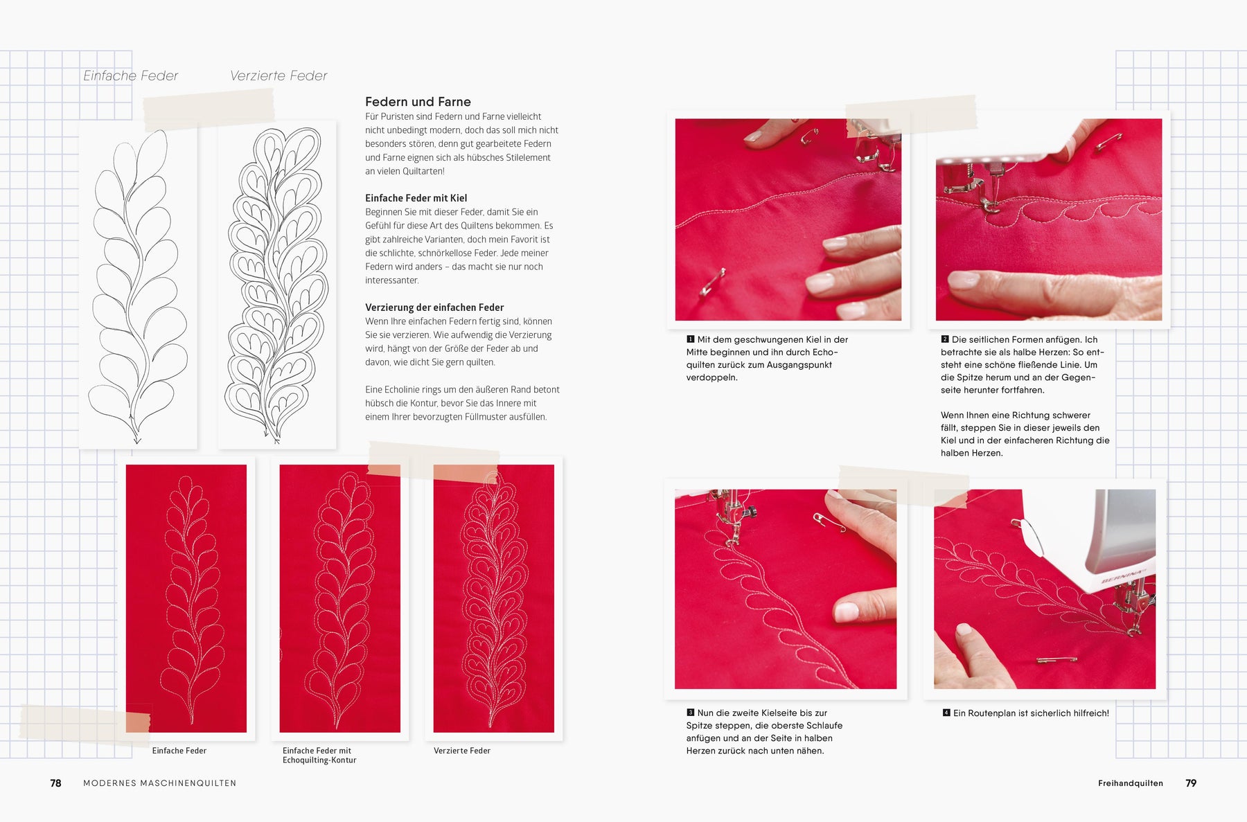 Klare Linien, raffinierte Farben, moderne Designs - Quilten ist ab jetzt frisch und modern! In diesem Buch finden Sie alles, um zu Hause auf Ihrer Nähmaschine zeitgemäße Quilts anzufertigen. Schritt für Schritt begleitet Sie die mit Preisen ausgezeichnete Quilterin und Lehrmeisterin Catherine Redford durch alle einzelnen Schritte - von der Planung eines Quilts über die Konstruktion bis zu den Abschlussarbeiten. Sie lernen viele unkomplizierte Designs kennen, die mit dem Obertransport gequiltet werden - gerade Linien, Matchstick-Quilting, Gitter und Karos, geschwungene Linien, Spiralen und mehr. Über ein Dutzend Techniken und Muster des Freihandquiltens eröffnen Ihnen neue kreative Möglichkeiten. Eine Galerie traumhafter Quilts macht Lust auf mehr, dazu gibt es einfache Anleitungen, die Spaß machen und ideal zum Üben sind. Die im Stil eines Arbeitshefts gestalteten Buchseiten bieten viel Platz für eigene Notizen, sodass »Modernes Maschinenquilten« zu Ihrem ganz persönlichen Nachschlagewerk wird.