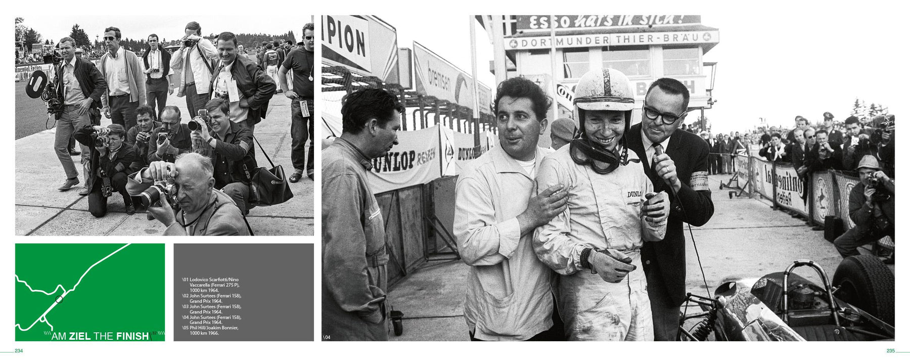 Wiedersehen macht Freude: Das Nürburgring Album erinnert an den legendären Eifel-Kurs in der Zeit vor den großen Umbauten. Als Besucher - nur durch Hecken vom Geschehen getrennt - die Fahrer und ihre Autos erleben und fotografieren konnten, als man nicht das ganze Wochenende auf nummerierten Sitzplätzen verbrachte, sondern die Strecke abwanderte und sich die besten Aussichtspunkte suchte. Kommen Sie mit auf eine Ring-Runde und quer durch die aufregenden Sechziger. Einmalig stimmungsvolle Fotos zeigen den Ring, das bunte Treiben an der Strecke, an den Boxen und im Fahrerlager - und vielfältige Eindrücke von den Rennen. Von Streckenabschnitt zu Streckenabschnitt geht die große Bilderrunde, vom Start ins Eifelwaldidyll Hatzenbach zu den Abenteuern der Touristenfahrer im Adenauer Forst, zu fliegenden Formelrennern am Brünnchen und Zeltstädte passierenden Sportwagen am Schwalbenschwanz. So war der Ring nur damals zu erleben, und so ist er noch nie im Buch gezeigt worden. //////////////////// Reacquaintance is a joy. This book recalls the Nürburgring in the time before the advent of major reconstruction work around the circuit. Those were the days when visitors - separated from the action by nothing but hedges - were free to experience and photograph the drivers and their cars, when you did not have to spend the whole weekend sitting in numbered seats but could wander around the track searching for the best vantage points. With this book, come along for a spin around the 'Ring during the exciting 1960s. Unique atmospheric photographs show the 'Ring with all the colourful hustle and bustle on the track, in the pits and in the paddock, as well as providing diverse impressions of the races themselves. The text and pictures take you from one section of track to the next, starting in the Eifel forest idyll of Hatzenbach to the adventures of the tourist drivers in the Adenauer Forst, then on to flying formula racers at the Brünnchen and to sports cars passing tent cities at the Schwalbenschwanz. It was only in those days that the 'Ring could provide its truly unique experiences, and this is the first time they have all been presented together in one single book. //////////////////// Les retrouvailles sont toujours chargées d'émotion : l'album du Nürburgring nous remémore le légendaire circuit de l'Eifel avant qu'il ne subisse les grands travaux. Une époque où les spectateurs, seulement séparés de l'action par des haies, pouvaient découvrir et photographier librement les pilotes et leurs voitures, sans passer tout le week-end assis sur des sièges numérotés, mais arpentant au contraire le circuit à la recherche des meilleurs points de vue. Rejoignez-nous dans les années soixante pour une visite de ce monument. Des photos à l'atmosphère unique montrent le Ring, l'agitation colorée qui règne sur la piste, dans les stands et dans le paddock. À travers ces clichés parcourons ensemble le grand circuit d'une section à l'autre, enfonçons-nous dans les paysage