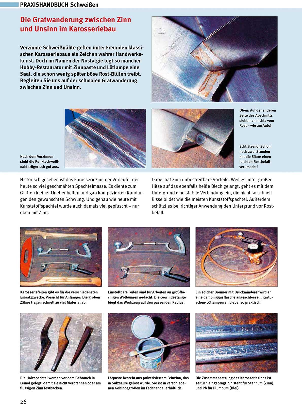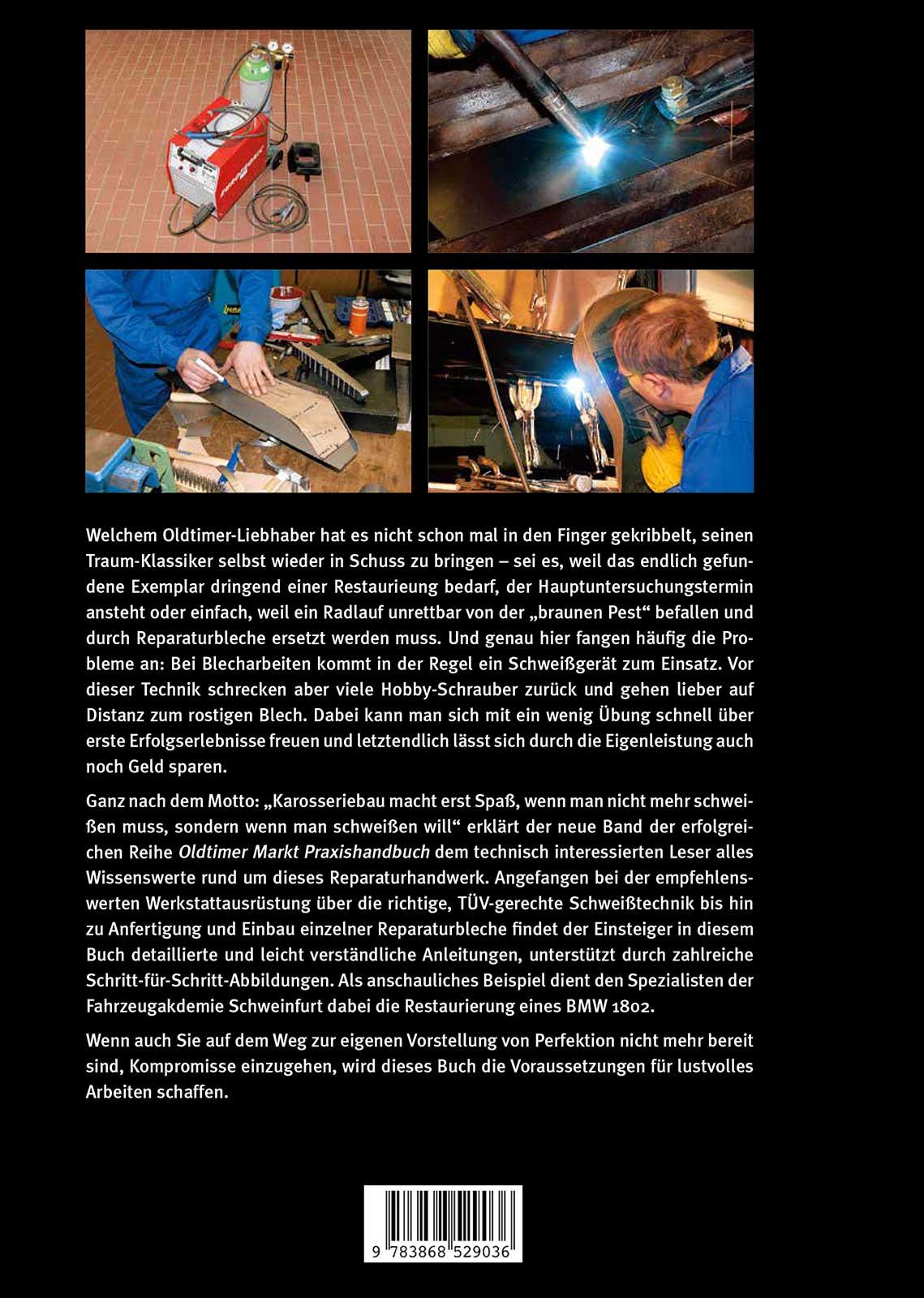 Jeder kann schweißen. - Profiwissen für Hobby-Schrauber und Restaurierer - Unzählige Tipps und Tricks - Das Standardwerk für Anfänger und Fortgeschrittene Welchem Oldtimer-Liebhaber hat es nicht schon mal in den Fingern gekribbelt, seinen Traum-Klassiker selbst wieder in Schuss zu bringen - sei es, weil das endlich gefundene Exemplar dringend einer Restaurierung bedarf, der Hauptuntersuchungstermin ansteht oder einfach, weil ein Radlauf unrettbar von der "braunen Pest" befallen und durch Reparaturbleche ersetzt werden muss. Und genau hier fangen häufig die Probleme an: Bei Blecharbeiten kommt in der Regel ein Schweißgerät zum Einsatz. Vor dieser Technik schrecken aber viele Hobby-Schrauber zurück und gehen lieber auf Distanz zum rostigen Blech. Dabei kann man sich mit ein wenig Übung schnell über erste Erfolgserlebnisse freuen und letztendlich lässt sich durch die Eigenleistung auch noch Geld sparen. Ganz nach dem Motto "Karosseriebau macht erst Spaß, wenn man nicht mehr schweißen muss, sondern wenn man schweißen will" erklärt der neue Band der erfolgreichen Reihe Oldtimer Markt Praxishandbuch dem technisch interessierten Leser alles Wissenswerte rund um dieses Reparaturhandwerk. Angefangen bei der empfehlenswerten Werkstattausrüstung über die richtige, TÜV-gerechte Schweißtechnik bis hin zu Anfertigung und Einbau einzelner Reparaturbleche findet der Einsteiger in diesem Buch detaillierte und leicht verständliche Anleitungen, unterstützt durch zahlreiche Schritt-für-Schritt-Abbildungen. Für alle Hobby-Schrauber, die auf dem Weg zur eigenen Vorstellung von Perfektion nicht mehr bereit sind, Kompromisse einzugehen, wird dieses Buch die Voraussetzungen für lustvolles Arbeiten schaffen.