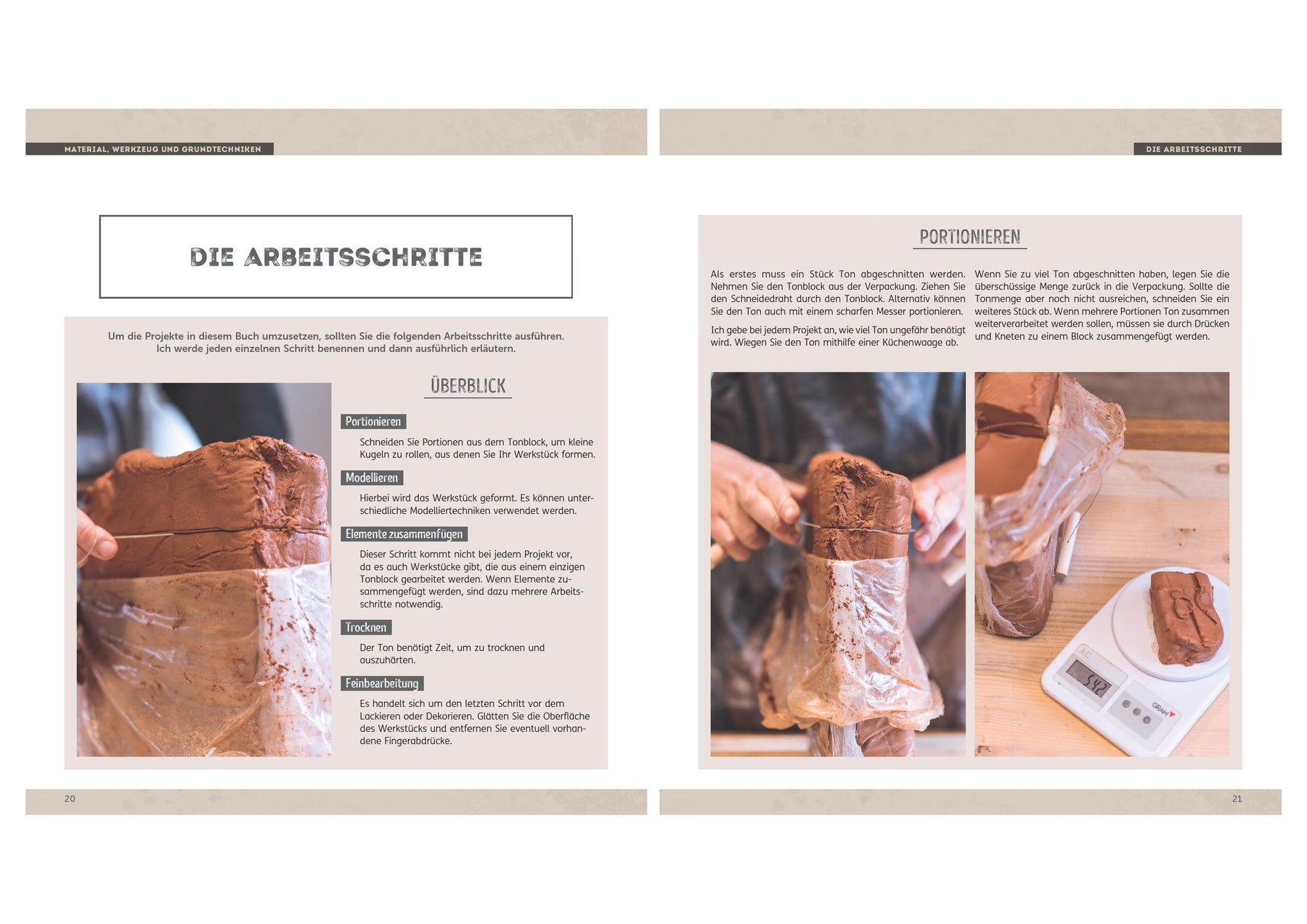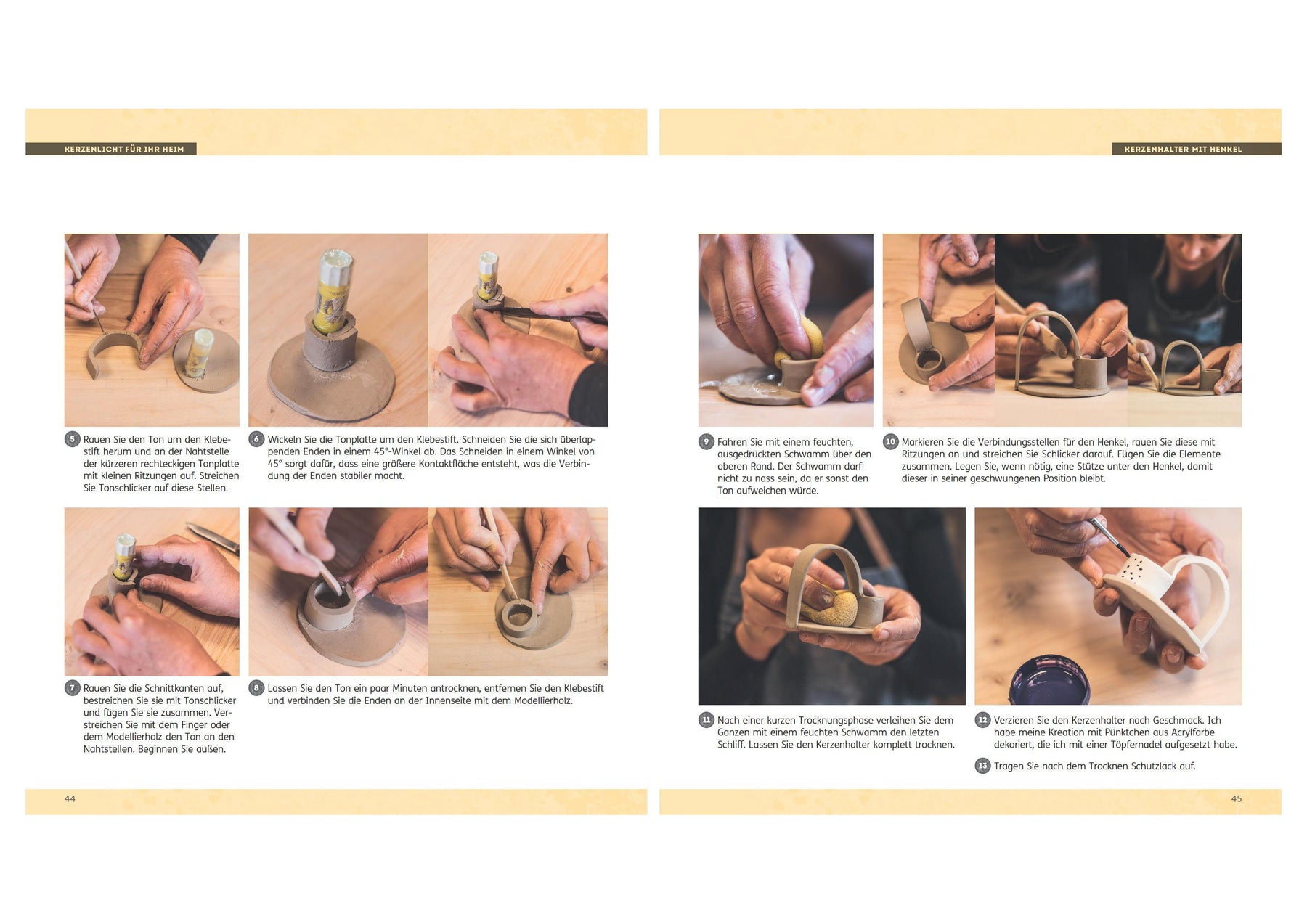 Töpfern ist eine Kunst, die jede*r erlernen kann. Dazu braucht es keine Töpferscheibe und auch keinen Brennofen, denn mit selbsthärtendem Ton geht das Trocknen von alleine. 20 ansprechende Projekte stehen zur Auswahl und können mit Hilfe der Schritt-für-Schritt-Anleitungen einfach nachgearbeitet werden: Vase, Kerzenhalter, Schmuckschale, Mobile, Knöpfe u.v.m. Dazu gibt es eine ausführliche Einleitung zu den verschiedenen Tonarten, Werkzeugen, Techniken und Dekorationsideen.