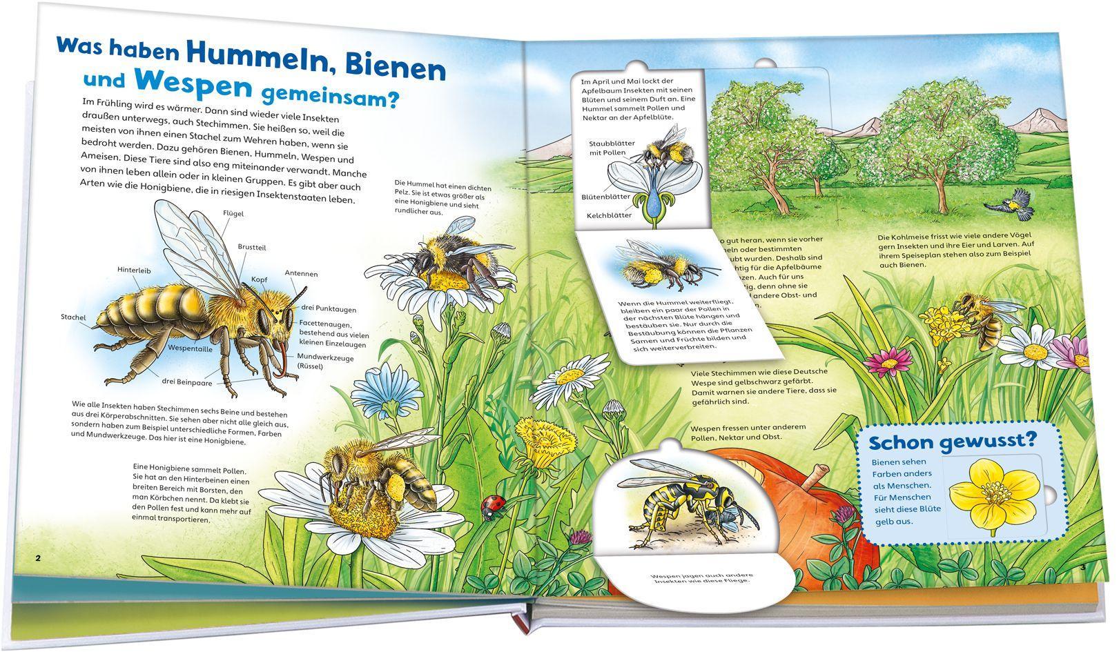 Warum sind die gestreiften Insekten so wichtig für uns? Wie funktioniert eigentlich die Bestäubung? Welche Funktion hat die Bienenkönigin? Der Band aus der Reihe WAS IST WAS JUNIOR beantwortet Fragen rund um die nützlichen Tiere. Kinder entdecken Spannendes über die gestreiften Hautflügler: Was Hummeln, Wespen und Bienen voneinander unterscheidet, dass sich Bienen durch Tanzen verständigen und wie man sich vor schmerzhaften Wespenstichen schützt. Eine Imkerin erklärt, wie Honig entsteht und was Bienen im Winter fressen. Mit zahlreichen Entdeckerklappen - für den detaillierten Blick hinter die Kulissen!