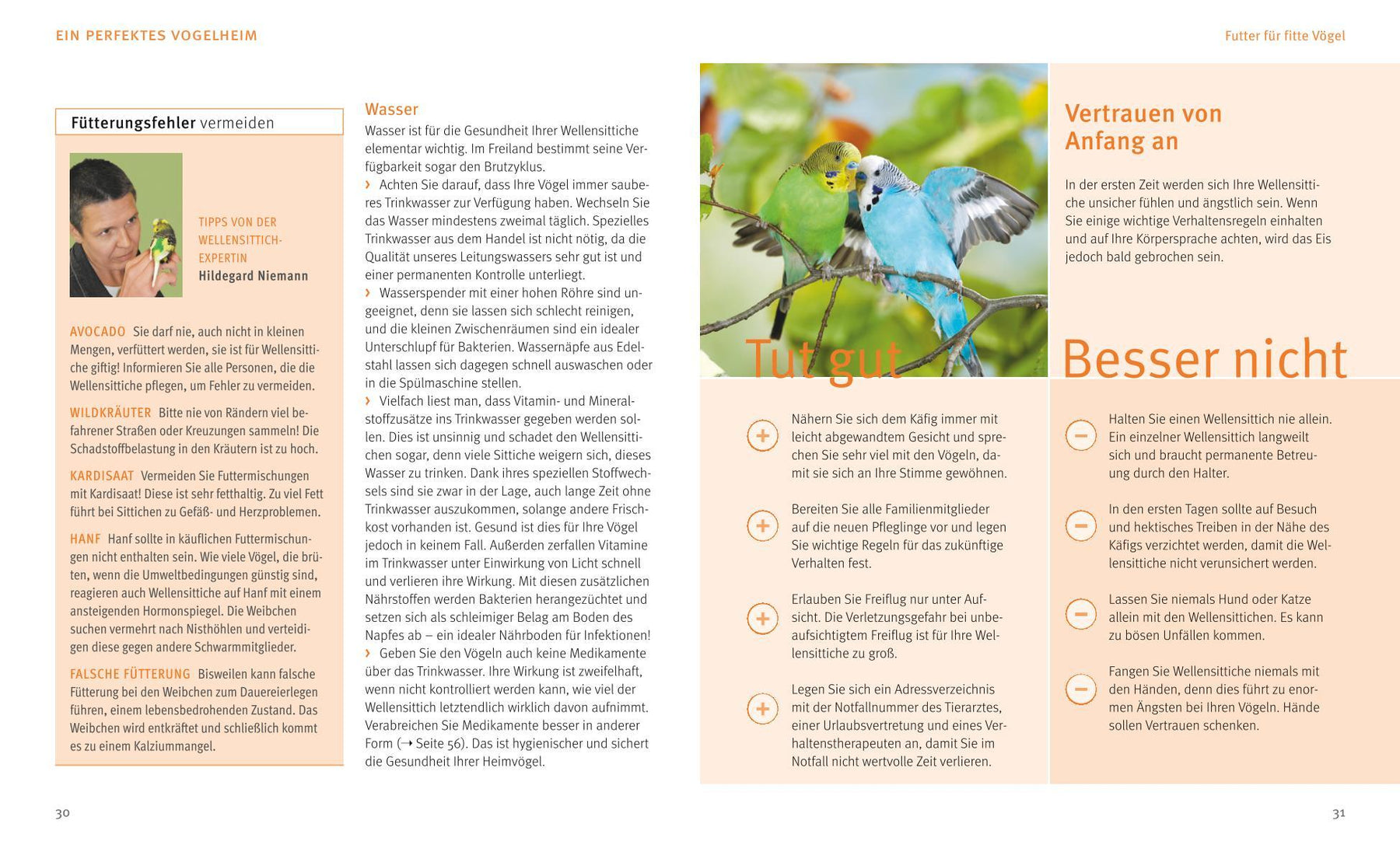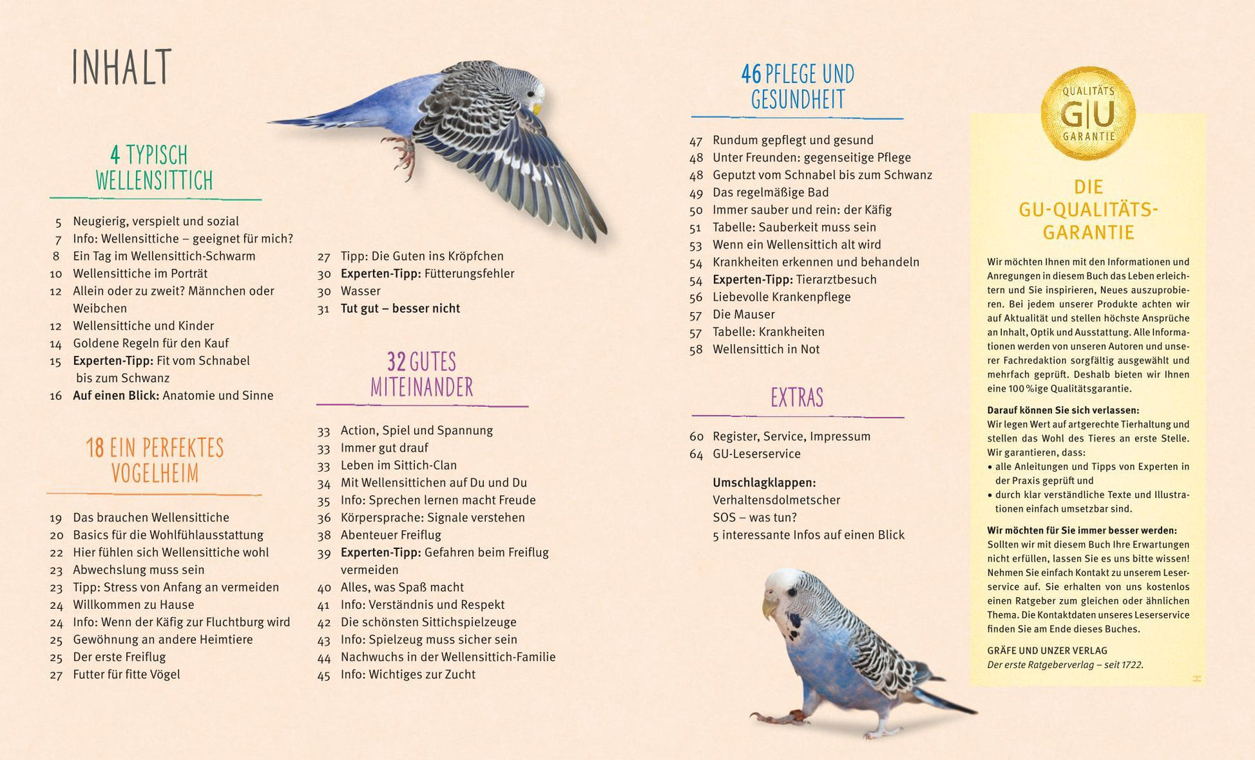 Die kleinen Papageien aus Australien sind aufgeweckt, gesellig und äußerst intelligent. Ihr fröhliches Gezwitscher bereitet Freude, und spätestens beim Freiflug in Ihrer Wohnung werden Sie merken, wie viel Energie in diesen Knirpsen steckt. Haben Sie erst einmal das Vertrauen der gefiederten Gesellen gewonnen, können sie richtig zutraulich werden. Was Wellensittiche brauchen, damit sie sich wohlfühlen sowie fit und gesund bleiben, weiß die Wellensittich-Expertin Hildegard Niemann sehr genau. Ihre praxisorientierten Tipps helfen Ihnen, das Vogelheim optimal auszustatten, den Freiflug sicher zu gestalten und mit den entsprechenden Beschäftigungsmöglichkeiten die Fähigkeiten Ihrer Vögel zu fördern. Dann steht einer engen Freundschaft zwischen Ihnen und Ihren Wellensittichen nichts mehr im Weg! Als Extra gibt's die GU Heimtier Plus-App. Damit wird der Tierratgeber interaktiv und hält weitere interessante Zusatzinfos und Bilder bereit.