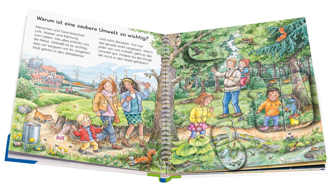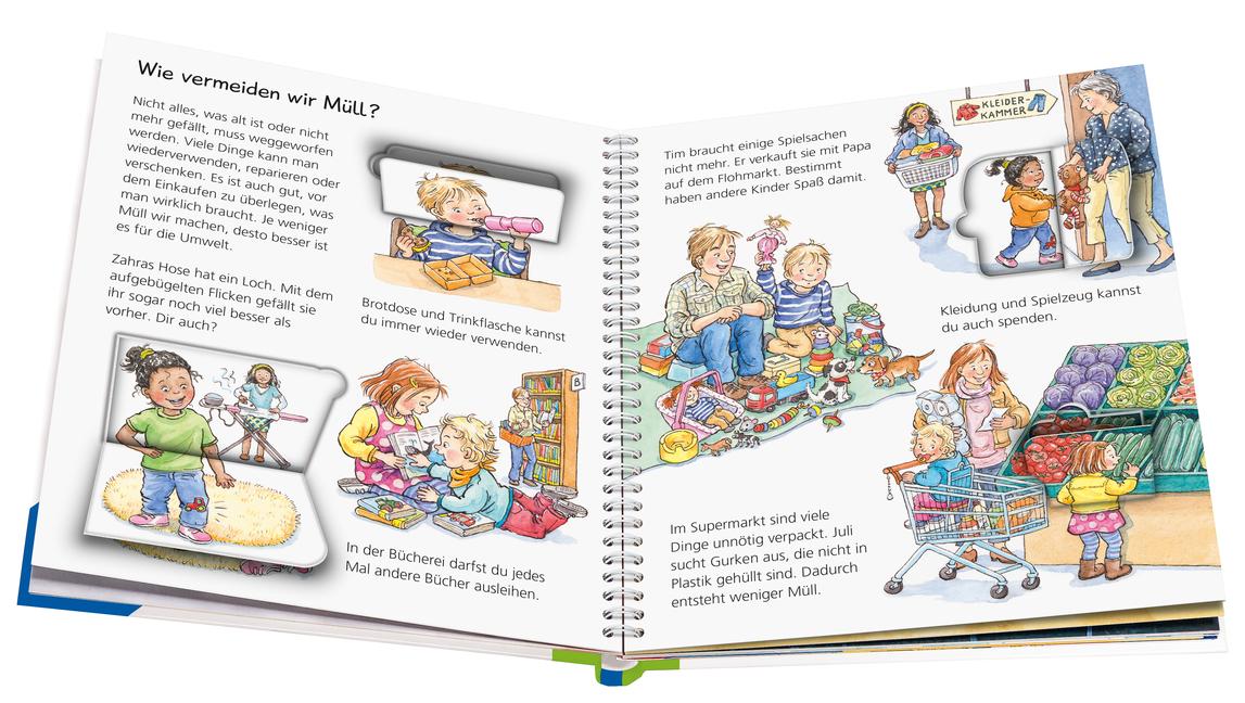 Ohne eine saubere Natur geht nichts! Denn sie schenkt uns Luft, Wasser und Nahrung zum Leben. Umso wichtiger, dass wir sorgsam mit ihr umgehen. Spielerische Klappen zeigen, wo der Müll hingehört und wo nicht, welche verschiedenen Sorten Abfall es gibt - und wie wir ihn sogar vermeiden können. Auch Wasser können wir leicht sparen. Schon die Kleinsten finden sich im Buch wieder und helfen gern mit. Fröhliche Illustrationen und lustige Situationen sorgen dafür, dass der Spaß nicht zu kurz kommt.