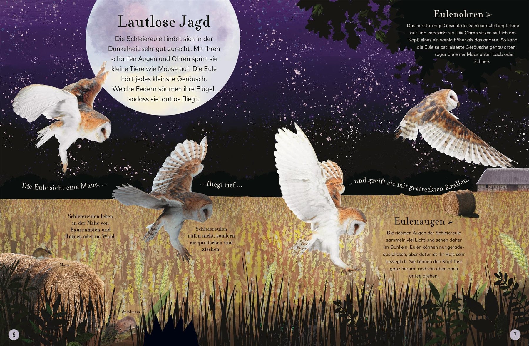 Ob funkelnde Sterne, das Licht des Mondes am Nachthimmel oder eine Schleiereule auf ihrem nächtlichen Streifzug - dieses atmosphärische Sachbilderbuch begleitet Kinder ab 4 Jahren mit eindrucksvollen Bildern auf eine erstaunliche Reise durch die Nacht. In szenischen Fotos und Illustrationen erleben Kinder den Zauber der Nacht hautnah. Dabei erfahren sie jede Menge Spannendes über die geheimnisvolle Welt der Tiere, Pflanzen und Sterne in der Nacht.