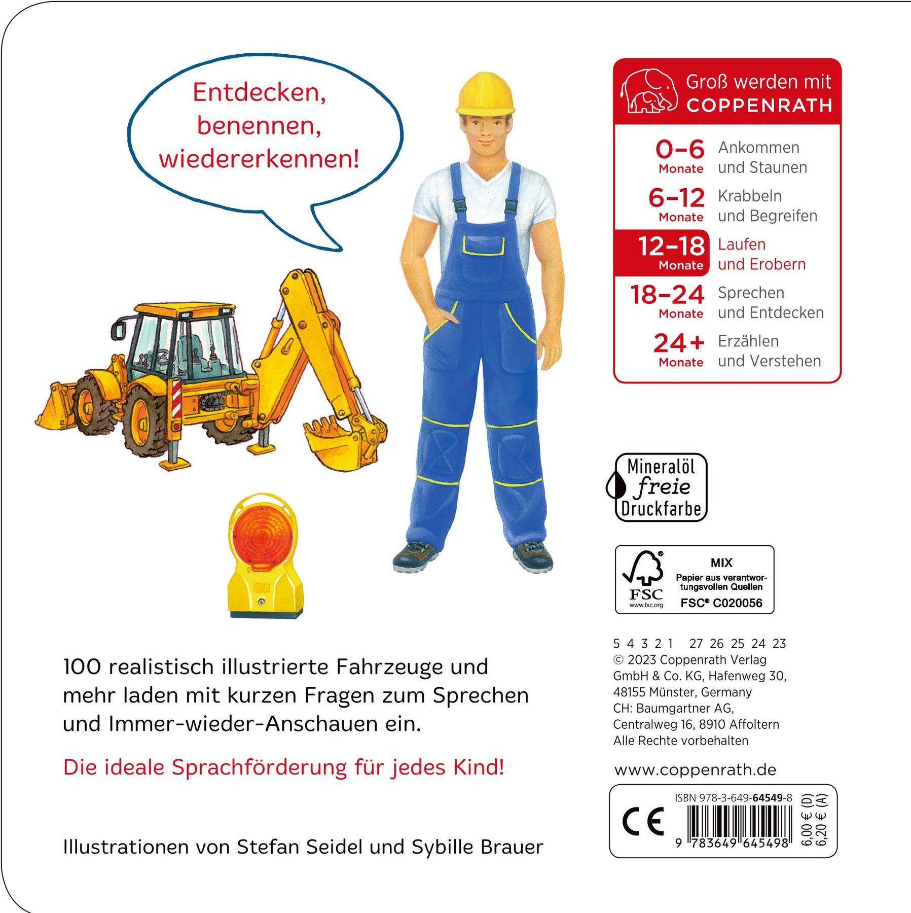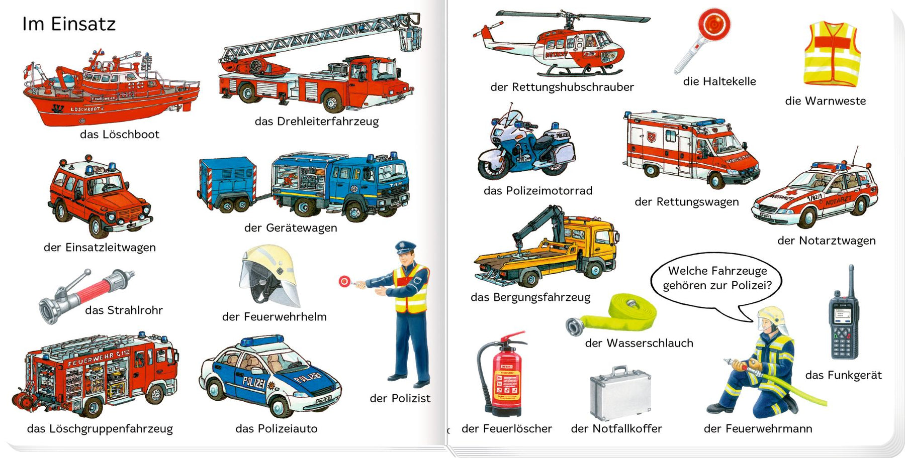 Entdecken, benennen, wiedererkennen! 100 realistisch illustrierte Fahrzeuge laden zum Sprechenlernen ein.