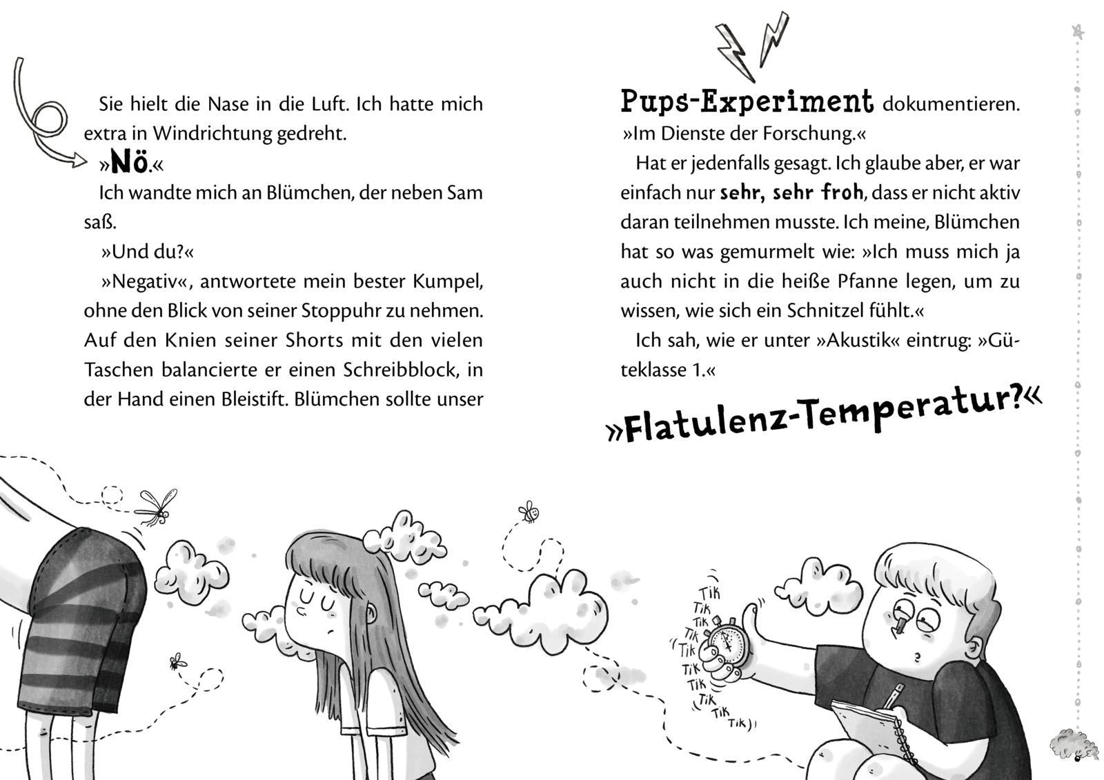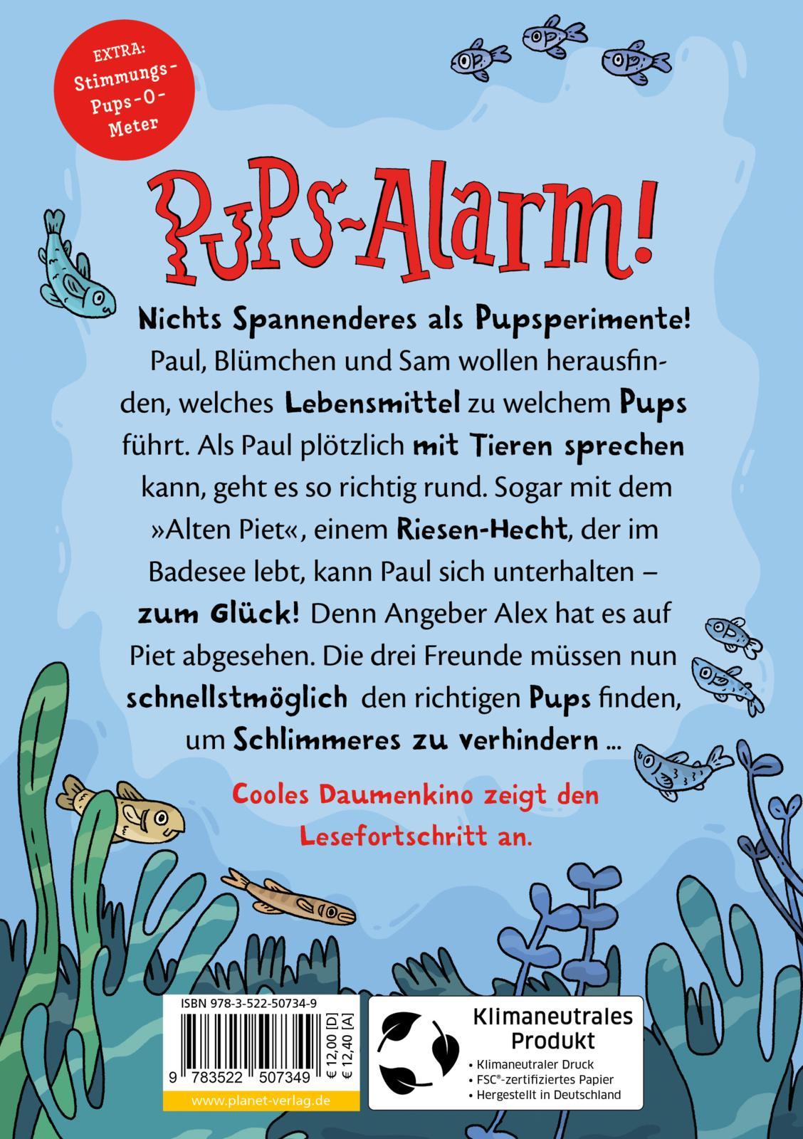 Es gibt nichts Spannenderes als Pupsperimente! Paul, Blümchen und Sam wollen herausfinden, welches "verbotene" Lebensmittel zu welchem Pups führt. Als Paul plötzlich mit Tieren sprechen kann, geht es so richtig rund. Sogar mit dem "Alten Piet", einem riesigen Hecht, der im Badesee lebt, kann Paul sich unterhalten - zum Glück! Denn der Angeber Alex hat es auf Piet abgesehen. Die drei Freunde müssen nun schnellstmöglich den richtigen Pups finden, um Schlimmeres zu verhindern ...