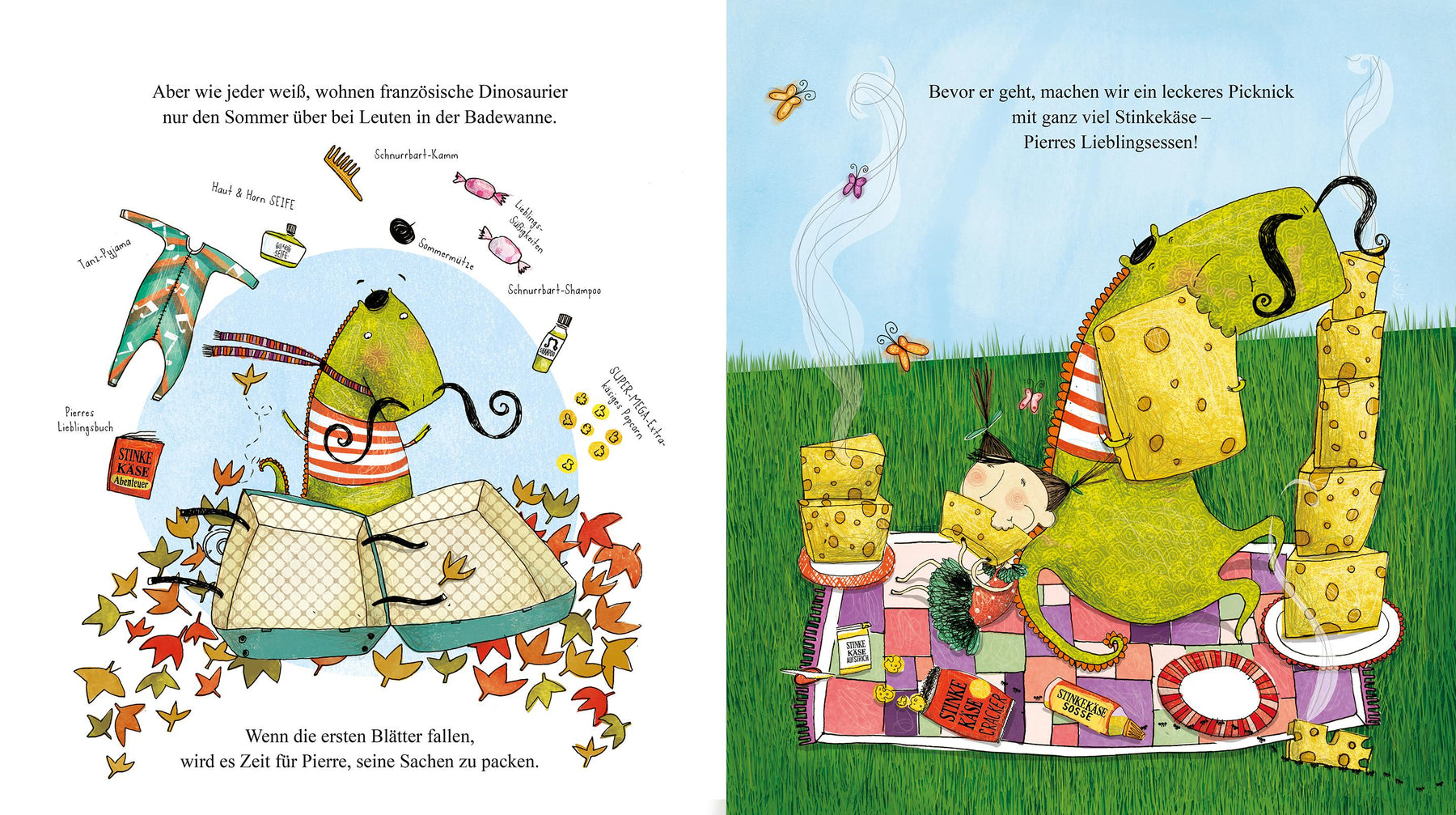 Mit so einem Dinosaurier ist es nie langweilig. Wenn es regnet, kann man zu Pierres Zaubergeige wunderbar an der Zimmerdecke tanzen. Und wenn die Sonne scheint, geht es mit dem Badewannenboot in ferne Länder.