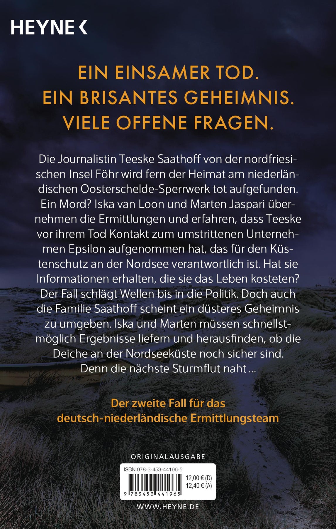Die von der nordfriesischen Insel Föhr stammende Journalistin Teeske Saathoff wird fern der Heimat am niederländischen Oosterschelde-Sperrwerk tot aufgefunden. Wurde sie ermordet? Iska van Loon und Marten Jaspari übernehmen die Ermittlungen und finden heraus, dass Teeske vor ihrem Tod Kontakt zum umstrittenen Erd- und Wasserbauunternehmen Epsilon aufgenommen hat. Das Unternehmen ist verantwortlich für den Küstenschutz an der Nordsee. Hat Teeske brisante Informationen zugespielt bekommen, die sie das Leben gekostet haben? Der Fall schlägt Wellen bis in die Politik, doch auch auf Föhr ist alles anders, als es scheint. Welches dunkle Geheimnis umgibt die Familie des Opfers? Iska und Marten müssen schnellstmöglich Ergebnisse liefern - und herausfinden, ob die Deiche an der Nordseeküste noch sicher sind. Denn die nächste Sturmflut kommt ...