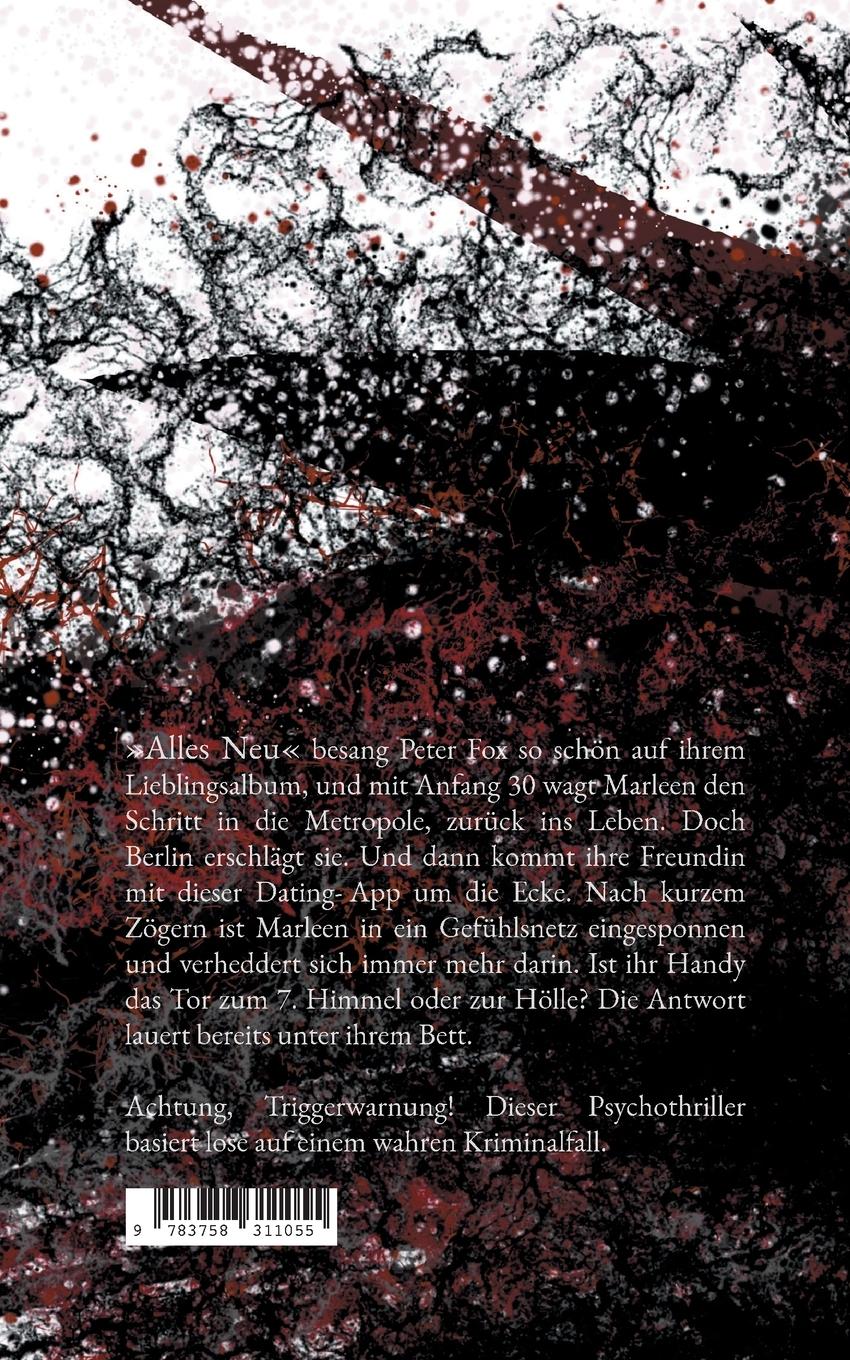 'Alles Neu' besang Peter Fox so schön auf ihrem Lieblingsalbum, und mit Anfang 30 wagt Marleen den Schritt in die Metropole, zurück ins Leben. Doch Berlin erschlägt sie. Und dann kommt ihre Freundin mit dieser Dating-App um die Ecke. Nach kurzem Zögern ist Marleen in ein Gefühlsnetz eingesponnen und verheddert sich immer mehr darin. Ist ihr Handy das Tor zum 7. Himmel oder zur Hölle? Die Antwort lauert bereits unter ihrem Bett. Achtung, Triggerwarnung! Dieser Psychothriller basiert lose auf einem wahren Kriminalfall.