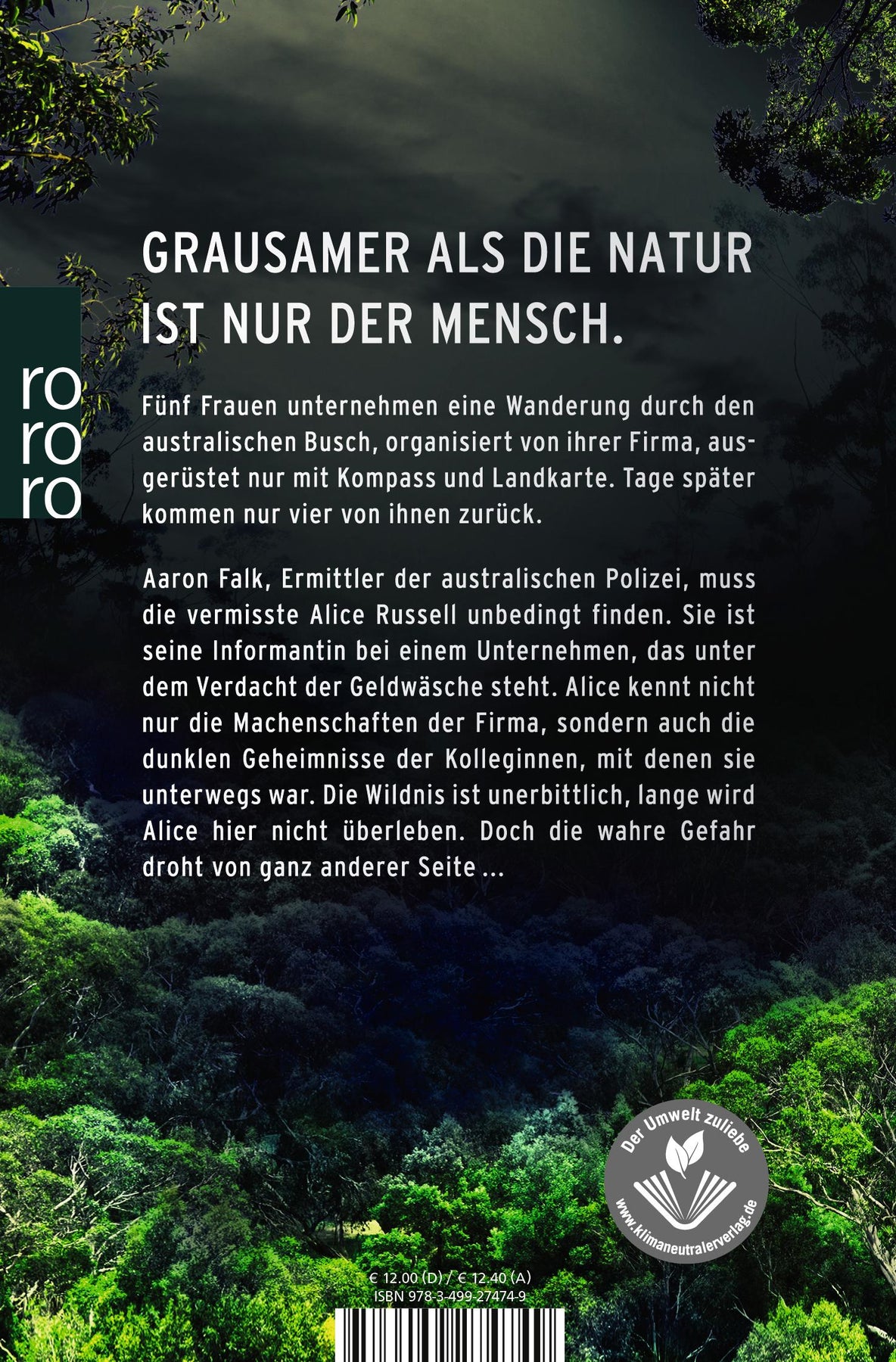 Fünf Frauen unternehmen eine Wanderung durch den australischen Busch. Tage später kommen nur vier von ihnen zurück. Aaron Falk, Ermittler der australischen Polizei, muss die vermisste Alice Russell unbedingt finden. Sie ist seine Informantin bei einem Unternehmen, das unter dem Verdacht der Geldwäsche steht. Alice kennt nicht nur die Machenschaften der Firma, sondern auch die dunklen Geheimnisse der Kolleginnen, mit denen sie unterwegs war. Die Wildnis ist unerbittlich, lange wird Alice hier nicht überleben. Doch die wahre Gefahr droht von ganz anderer Seite.