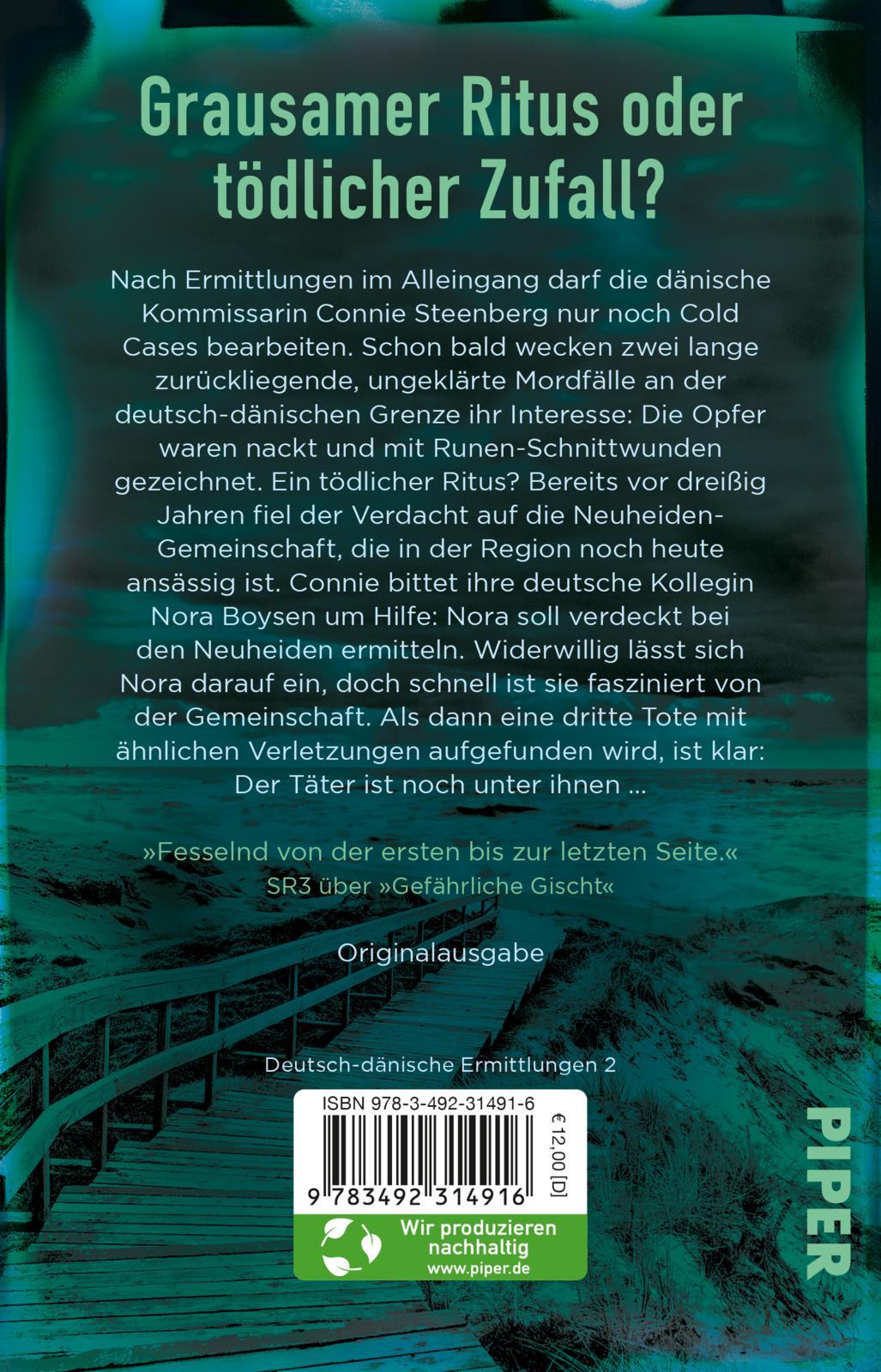 Nach Ermittlungen im Alleingang wurde die Dänin Connie Steenberg aufs Abstellgleis geschoben: Sie darf nur noch Cold Cases bearbeiten. Da entdeckt Connie zwei ungeklärte Mordfälle an der deutsch-dänischen Grenze: Die Opfer waren nackt und mit Runen-Schnittwunden verstümmelt.
