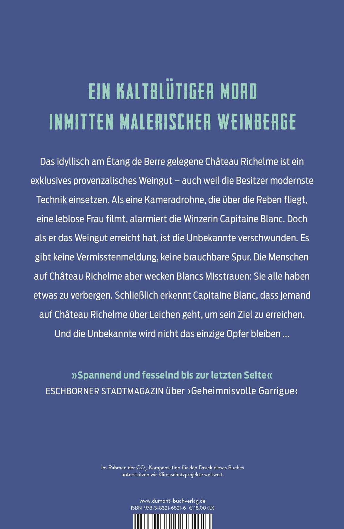 Der elfte Fall für Capitaine Roger Blanc Mai in der Provence. Das idyllisch am Étang de Berre gelegene Château Richelme ist ein exklusives, vielfach ausgezeichnetes provenzalisches Weingut - auch weil die Besitzer allerneuste Technik einsetzen. Als eine Kameradrohne zur Kontrolle über die Reben fliegt, filmt sie für wenige Sekunden zufällig eine Frau, die leblos in der Garrigue liegt. Die Winzerin alarmiert Capitaine Roger Blanc, doch als er das Weingut erreicht, ist die Unbekannte spurlos verschwunden. Niemand wird vermisst gemeldet, es gibt keine brauchbaren Indizien. Aber die Menschen auf Château Richelme wecken Blancs Misstrauen: ein berühmter Winzer, der im Sterben liegt. Eine Winzerin, die das Schloss an einen zwielichtigen Makler verkaufen will. Ein zorniger Sohn, der es unbedingt behalten möchte. Ein alter Freund, der zugleich ein ewiger Rivale ist. Zwei Mitarbeiter, die um ihre Jobs fürchten. Alle haben mehr als ein Geheimnis zu verbergen. Schließlich erkennt Capitaine Blanc, dass jemand auf Château Richelme über Leichen geht, um sein Ziel zu erreichen. Und die Unbekannte wird nicht das einzige Opfer bleiben ... Mord in der Provence - Capitaine Roger Blanc ermittelt: Band 1: Mörderischer Mistral Band 2: Tödliche Camargue Band 3: Brennender Midi Band 4: Gefährliche Côte Bleue Band 5: Dunkles Arles Band 6: Verhängnisvolles Calès Band 7: Verlorenes Vernègues Band 8: Schweigendes Les Baux Band 9: Geheimnisvolle Garrigue Band 10: Stille Sainte-Victoire Band 11: Unheilvolles Lançon Band 12: Rätselhaftes Saint-Rémy Band 13: Bedrohliche Alpilles Alle Bände sind eigenständige Fälle und können unabhängig voneinander gelesen werden.