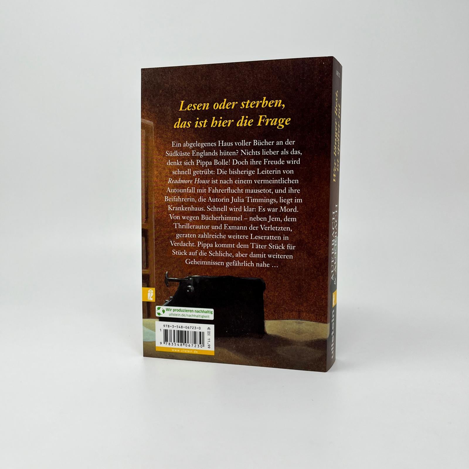 Pippa hütet ein einsam an der englischen Südküste gelegenes Bücherhaus, in dem gemütliche Lesewochen abgehalten werden. Doch die dafür gebuchte Liebesromanautorin Julia Timmings wird bei einem Autounfall mit Fahrerflucht schwer verletzt und überlebt nur knapp. Für sie springt ihr Ex-Mann und Thrillerautor Jem ein, der aufgrund seiner Hardboiled-Bücher als gewaltaffin eingestuft wird. Bald gibt es erste Gerüchte: Hat er Julia aus dem Weg geräumt, um selbst bei den beliebten Lesewochen lesen zu können? Er avanciert zum Tatverdächtigen, doch Pippa Bolle ahnt, dass der Fall nicht so einfach zu lösen ist.