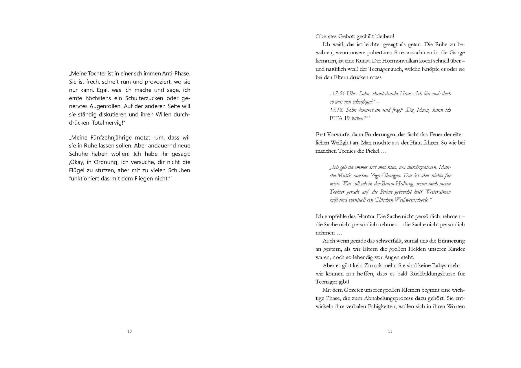 Wer Kinder in der Pubertät hat, kennt ständige Diskussionen über Schule, Zimmeraufräumen und Helfen im Haushalt. Der weiß, Whats-App ist überlebenswichtig und Hygiene überschätzt - jedenfalls aus der Sicht der Teenager. Pubertät ist ein aufreibender Abnabelungsprozess, der notwendig ist, damit Jugendliche sich selbst und ihre Grenzen kennenlernen und starke Persönlichkeiten werden können. Damit Eltern diese strapaziöse Zeit besser überstehen, geht Diplom-Pädagoge und Comedian Matthias Jung nach seinem Bestseller 'Chill Mal!' in die nächste Runde. Dieses Mal wird gestressten Eltern Hilfestellung für ganz konkrete Situationen geliefert. 40 der typischsten Konflikte werden aufgegriffen und die Eltern humorvoll beraten, frei nach dem Motto: Pubertät ist, wenn man trotzdem lacht. Denn die gute Nachricht ist: Pubertät geht vorbei! Irgendwann fällt der Groschen, es macht Klick und maulige Teenager werden zu großartigen Erwachsenen. Es ist wie bei einem ewig andauernden Musik-Festival: Man ist irgendwie total fertig, komplett übermüdet, aber man kann stolz sagen: Wir waren dabei!
