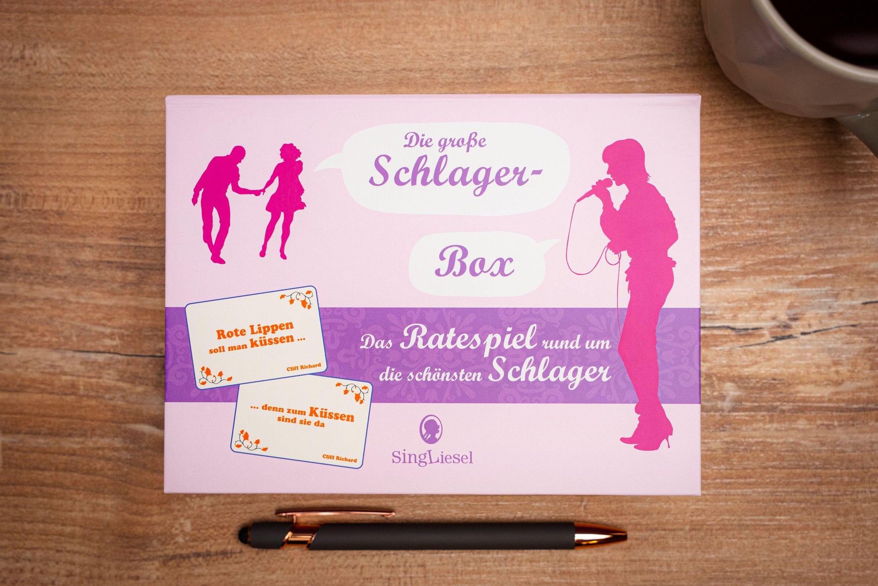 Die Schlager-Box enthält 100 Karten mit Quiz-Fragen zu den bekanntesten deutschen