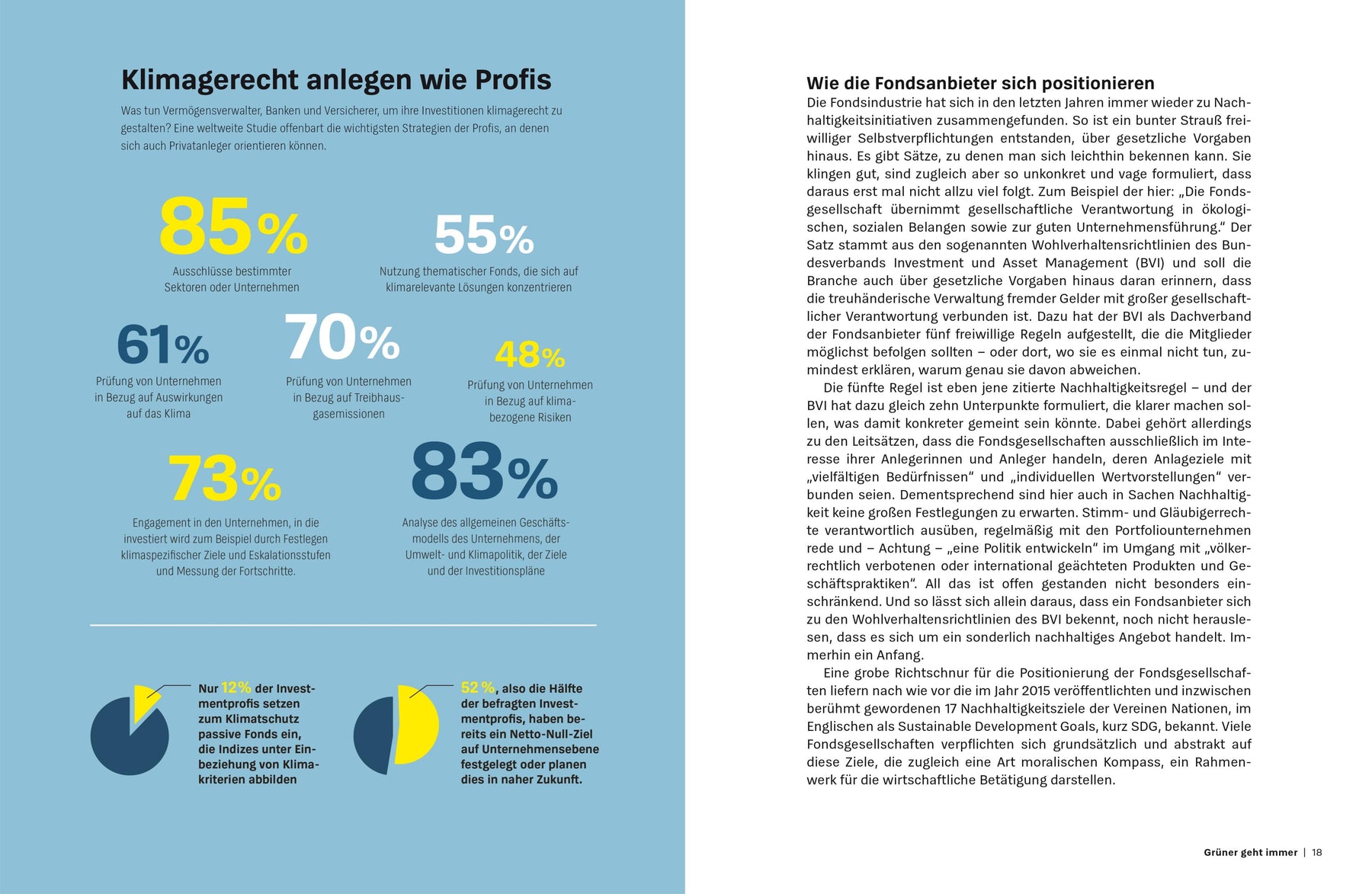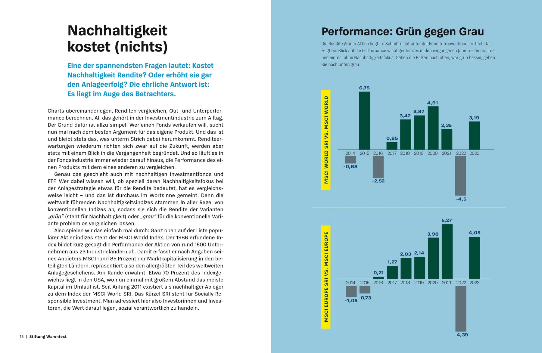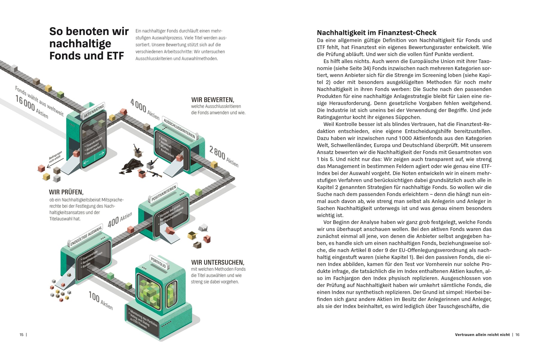 Die Expertinnen und Experten der Stiftung Warentest erklären Fachbegriffe und zeigen, wie Anleger je nach Risikoneigung und Aufwand, den sie betreiben möchten, die zu ihnen passende grüne Geldanlage finden - mit Bewertungen zu Nachhaltigkeit und Renditechancen der wichtigsten Fonds und ETFs.