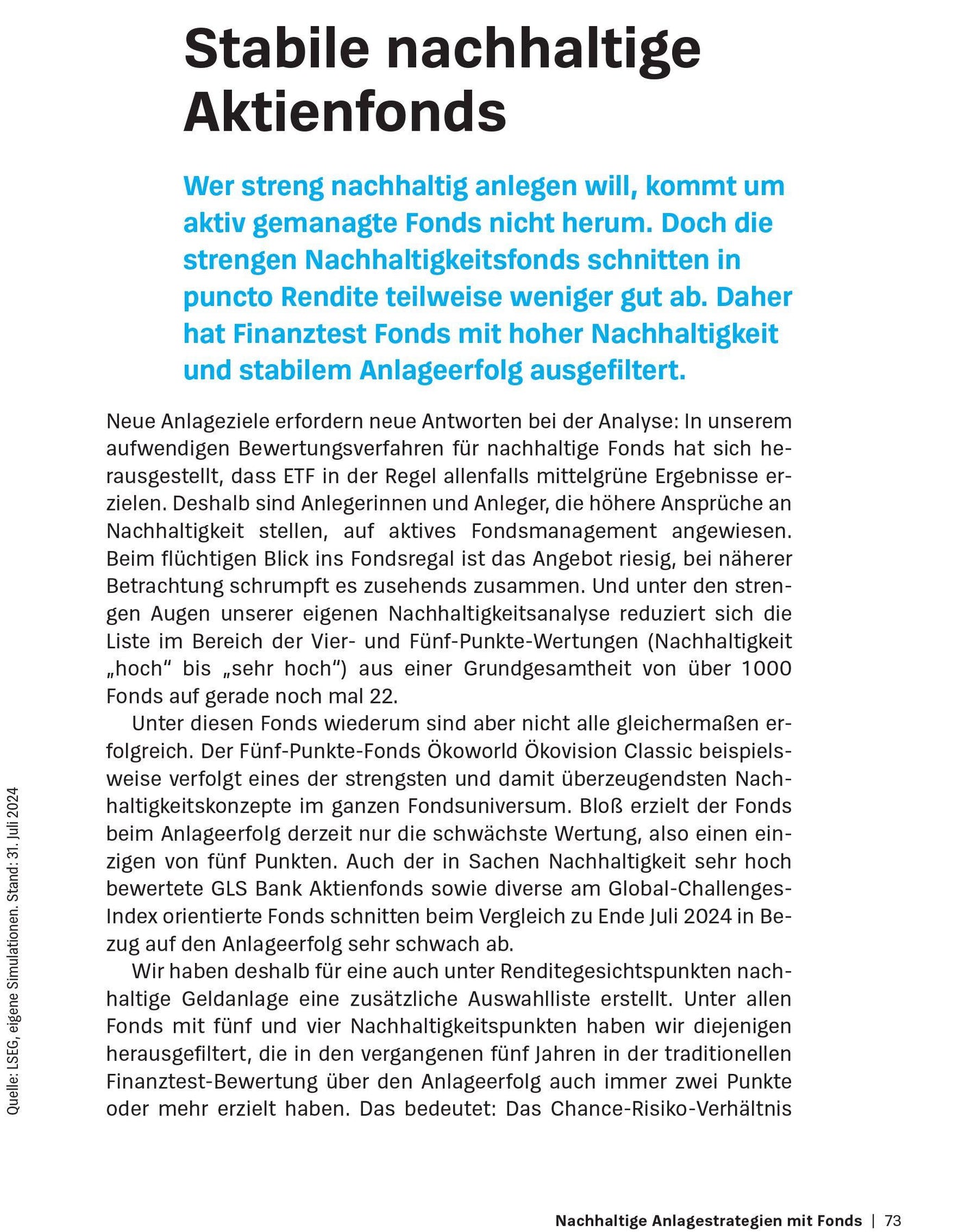 - Tabellen - von Stiftung Warentest getestete nachhaltige Aktien- und Rentenfonds im Vergleich