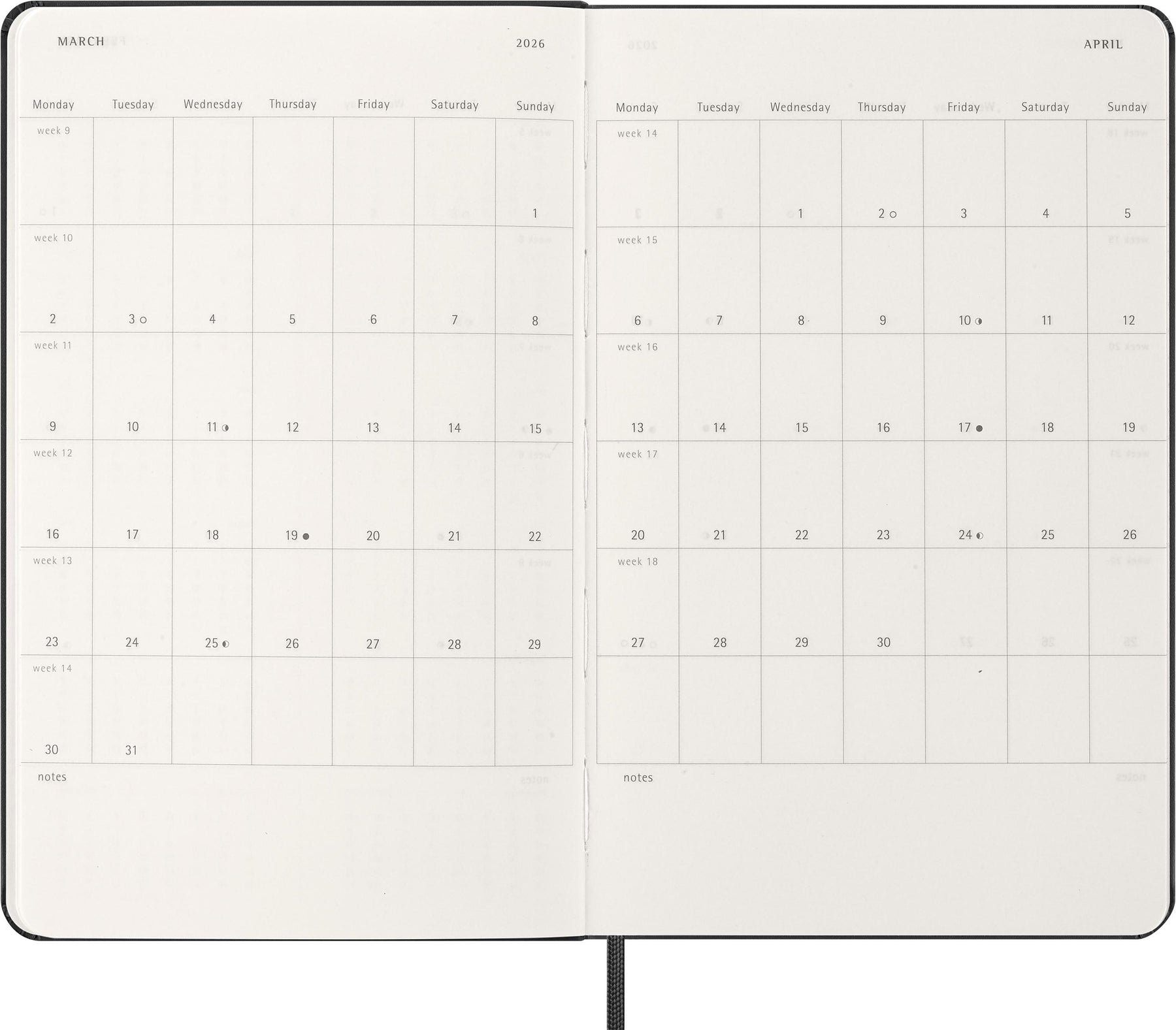 Moleskine 12 Monate Wochenkalender 2026, Large/A5, 1 Wo = 2 Seiten, horizont...