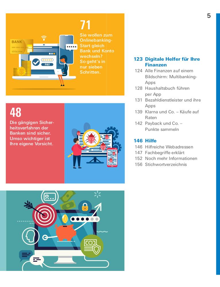 Sowohl Mobile-Banking als auch Banking-Apps sowie Bezahldienstleister wie PayPal, Klarna, Amazon Pay, Apple Pay oder Google Pay werden vorgestellt und nach Benutzerfreundlichkeit beurteilt. Und wenn Sie schon die Kontoführung auf dem Smartphone verwalten, können Sie auch Ihre privaten Finanzen mit einer Haushaltsbuch-App organisieren. Die getesteten Spitzenreiter finden Sie im Buch.