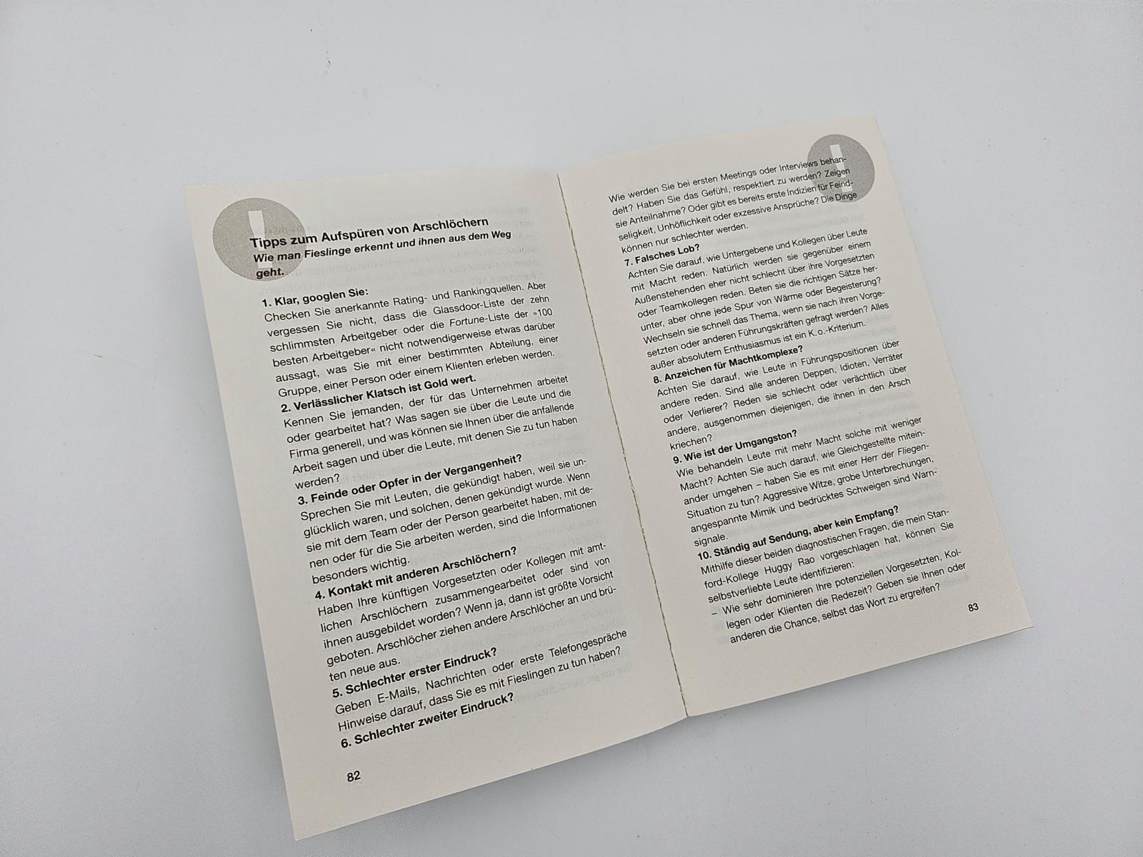 Wer kennt sie nicht: den Kollegen, der sich mit fremden Federn schmückt, den cholerischen Chef, der seine Mitarbeiter anbrüllt, oder die intrigante Nachbarin, die liebend gern Gerüchte in die Welt setzt. Egal, ob in Beruf, Freundeskreis oder Familie - Arschlöcher lauern überall. Der erfahrene Management-Professor Robert Sutton gibt in diesem Handbuch Antworten auf die brennenden Fragen, die ihm seit Erscheinen seines internationalen Bestsellers 'Der Arschloch-Faktor' am häufigsten gestellt wurden. Dabei bezieht er aktuelle Studien und Management-Techniken mit ein und liefert, abhängig vom jeweiligen Arschloch-Typus, zahlreiche praktische Tipps und Strategien zum Umgang mit schwierigen Zeitgenossen.