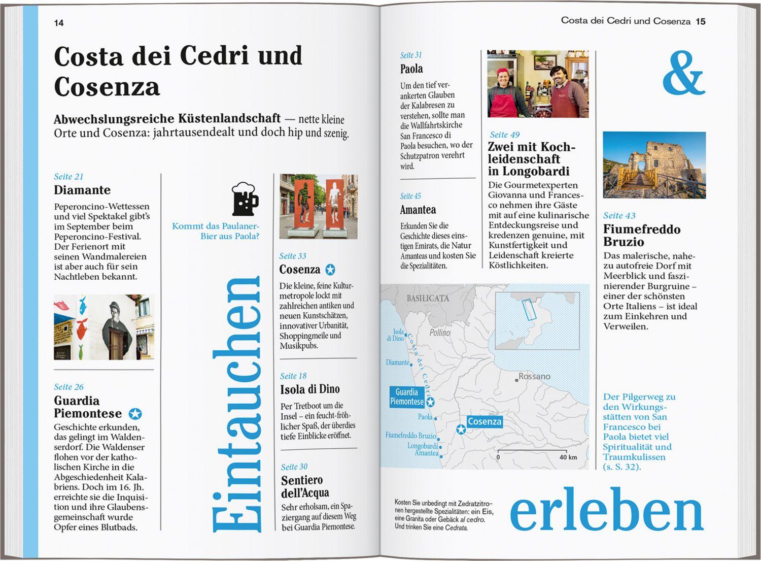 Über das Buch Die südlichste Region der Apenninhalbinsel zählt zu den weniger bekannten Landstrichen Italiens. Doch wer die ¿Stiefelspitze¿ mit ihrem wunderbaren Farbenspiel, der Wärme, den Düften und dem Meer bereist, verfällt ihr leicht auf ewig. Die Autorin Ilona Witten kennt Kalabrien seit Kindertagen und versorgt Sie mit den besten Tipps für eine individuelle Annäherung an diese abwechslungsreiche Region. Dabei können Sie ganz Ihren Vorlieben folgen: Im Pollino- oder im Sila-Nationalpark wandern, Kulturschätze wie die Steinritzzeichnung des ¿allerersten Stiers¿ in der Grotta del Romito oder die Bronzekrieger von Riace bewundern, jahrtausendealte Siedlungsspuren der Griechen durchstreifen, von mittelalterlichen Burgen weit in die Landschaft schauen, in kleinen, urigen Dörfern im Landesinneren die Gastfreundschaft der Einheimischen erleben. Die Autorin erklärt, wo an der 780 km langen Küstenlinie die schönsten Strände liegen, sei es am Golf von Squillace, wo der feine Sand zwischen den Zehen zerrinnt, in der Meerenge von Messina, wo man mit Blick auf Sizilien badet, oder an der Costa Viola, wo man herrlich schnorcheln und tauchen kann. Fest steht: ¿Das¿ Kalabrien gibt es nicht. Mancherorts scheint die Zeit stehen geblieben zu sein, anderswo gibt es zukunftsweisende Projekte wie das Keramikdorf Squillace, die ökologische Dorferneuerung in Belmonte oder eine gastronomische Kultur, die alte Traditionen mit innovativer Raffinesse verbindet. Ilona Witten zeigt Ihnen das authentische Kalabrien, dabei kommen aktuelle Entwicklungen nicht zu kurz. Und so erleben Sie Kalabrien mit dem DUMONT Reise-Taschenbuch: - Persönlich und echt: Wir legen Wert auf ehrliche Erlebnisse, Nähe und Gegenwart - Übersichtliche Gliederung in einzelne Regionen mit ihren Orten und Landschaften - Lustvolle Eintauchen-und-erleben-Seiten vor jedem Kapitel - Die Touren: Einfach losziehen, neue Wege gehen. Aktiv in Natur und Kultur eintauchen - Die Lieblingsorte: gut für überraschende Entdeckungen - Die Adressen: radikal subjektive Auswahl, mal stylish, mal ökologisch, immer individuell und persönlich - Das Magazin: ein abwechslungsreiches Reisefeuilleton. Es packt auch kritische und kontroverse Themen an ... - Die Karten: 7 Citypläne, 18 Tourenkarten, Übersichtskarte mit den Highlights in Kalabrien, Schnellüberblick zu jeder Region plus eine große Reisekarte