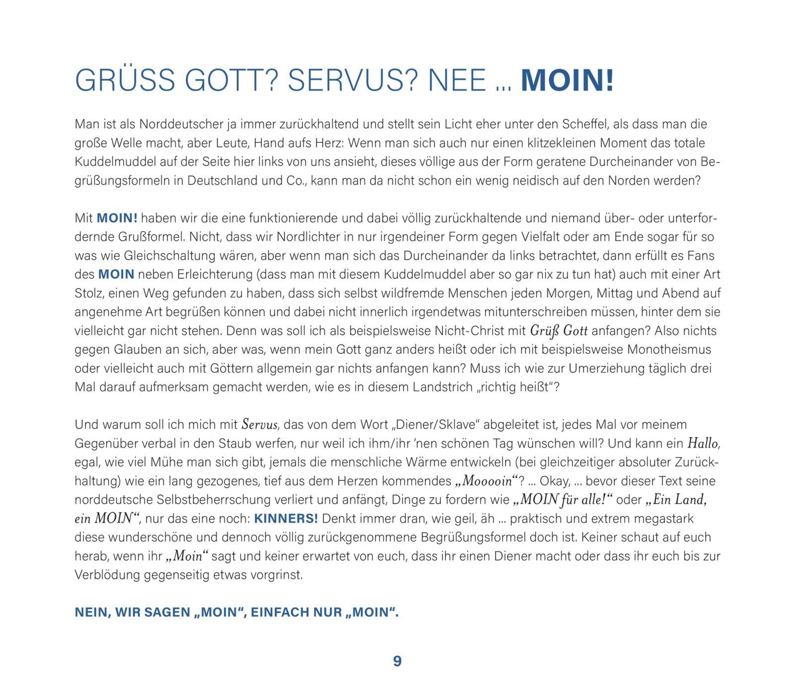 Weil es aber noch so viel mehr über Land und Leute aus dem Norden und ihre liebenswerten Eigenheiten zu lernen gibt und man von das Ganze einfach nich genuch von kriegen kann, kommt jetzt "Das große Buch MOIN".