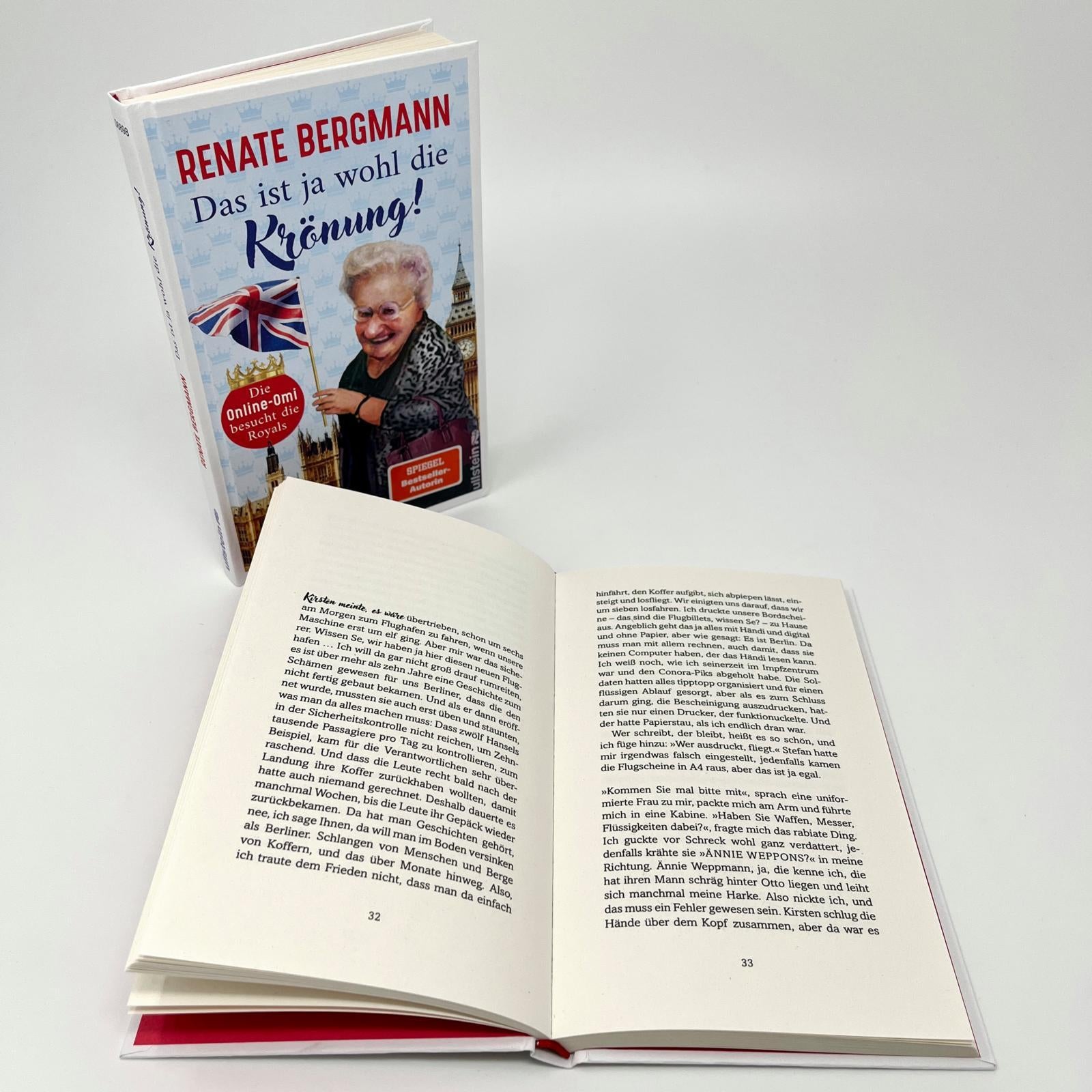 Royals-Expertin Renate Bergmann packt die Fähnchen ein und reist zur Krönung von König Charles III. Freuen Sie sich auf ihre Abenteuer zwischen Westminster Abbey und Buckingham Palace!