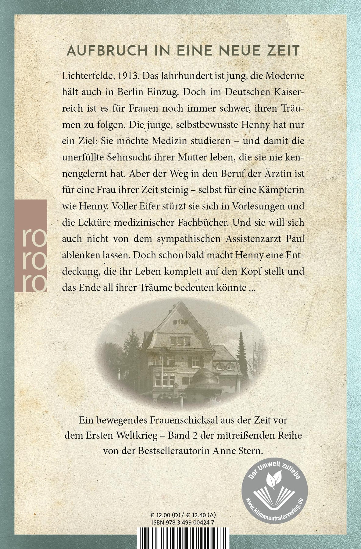 Lichterfelde, 1913. Das Jahrhundert ist jung, die Moderne hält auch in Berlin Einzug. Doch im Deutschen Kaiserreich ist es für Frauen noch immer schwer, ihren Träumen zu folgen. Die junge, selbstbewusste Henny hat nur ein Ziel: Sie möchte Medizin studieren - und damit die unerfüllte Sehnsucht ihrer Mutter leben, die sie nie kennengelernt hat. Aber der Weg in den Beruf der Ärztin ist für eine Frau ihrer Zeit steinig - selbst für eine Kämpferin wie Henny. Voller Eifer stürzt sie sich in Vorlesungen und die Lektüre medizinischer Fachbücher. Und sie will sich auch nicht von dem sympathischen Assistenzarzt Paul ablenken lassen. Doch schon bald macht Henny eine Entdeckung, die ihr Leben komplett auf den Kopf stellt und das Ende all ihrer Träume bedeuten könnte ...